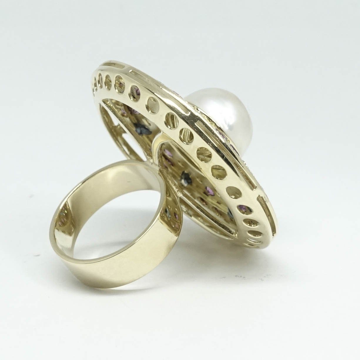 Mabe Pearl, Sapphire, Pink Tourmaline and Diamond Ring
