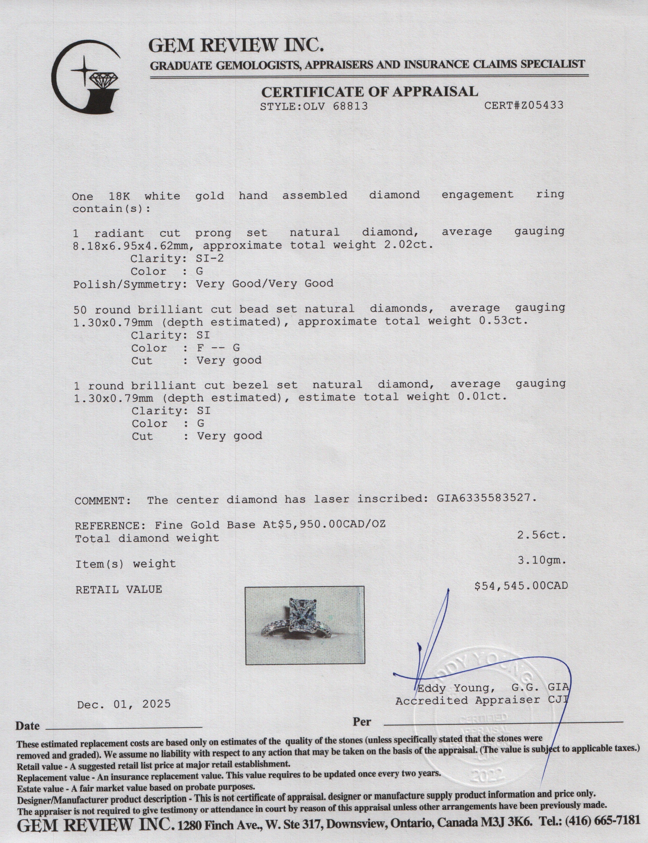 Box, Paperwork, GIA CertificateGem Review Appraisal