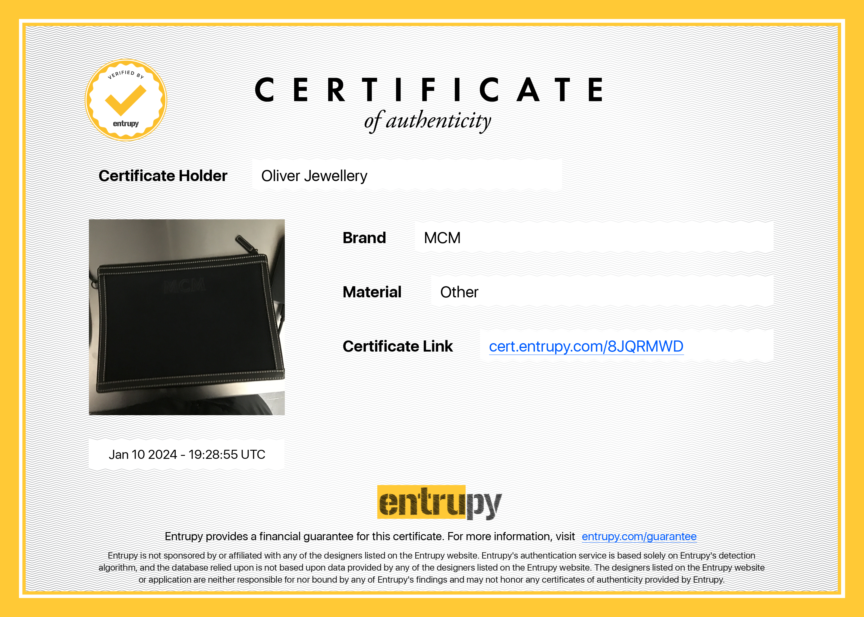 Dust Bag, Detachable Wrist Strap, Entrupy Certificate of Authenticity