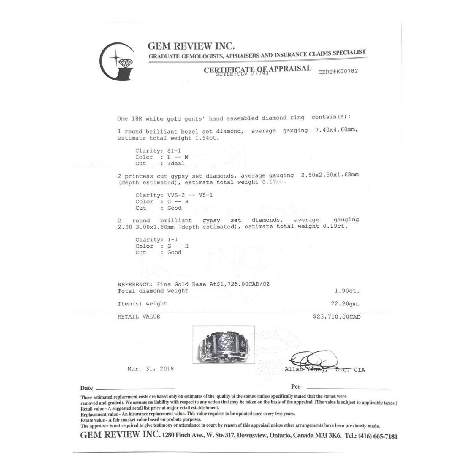 - 1 Round Brilliant Cut Diamond ( 1.54 Estimated Total Carat Weight of SI1 Clarity; L-M Color; Ideal Cut); 7.40 x 4.60mm Estimated Depth
