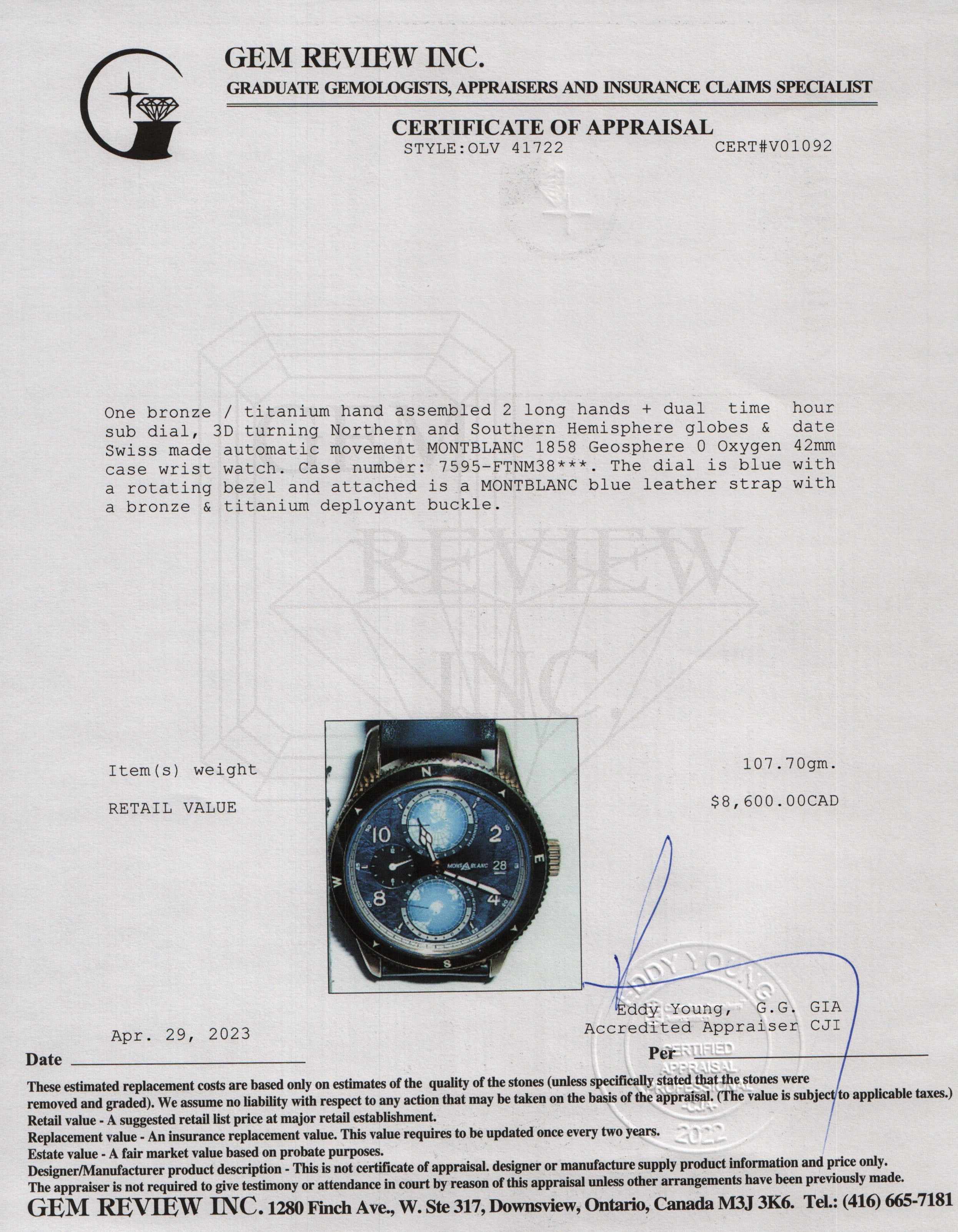 Montblanc 1858 Geosphere 0 Oxygen Limited Edition 42mm Bronze Watch