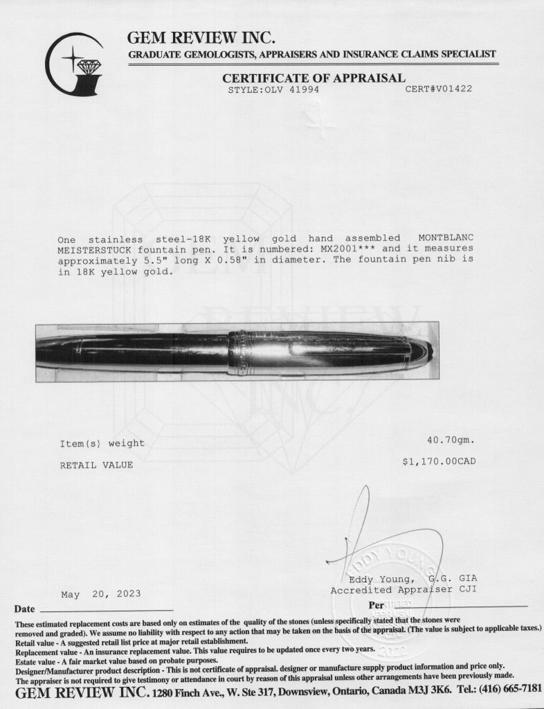 Included items: Original Montblanc Case & Ink Refill and Gem Review Appraisal
