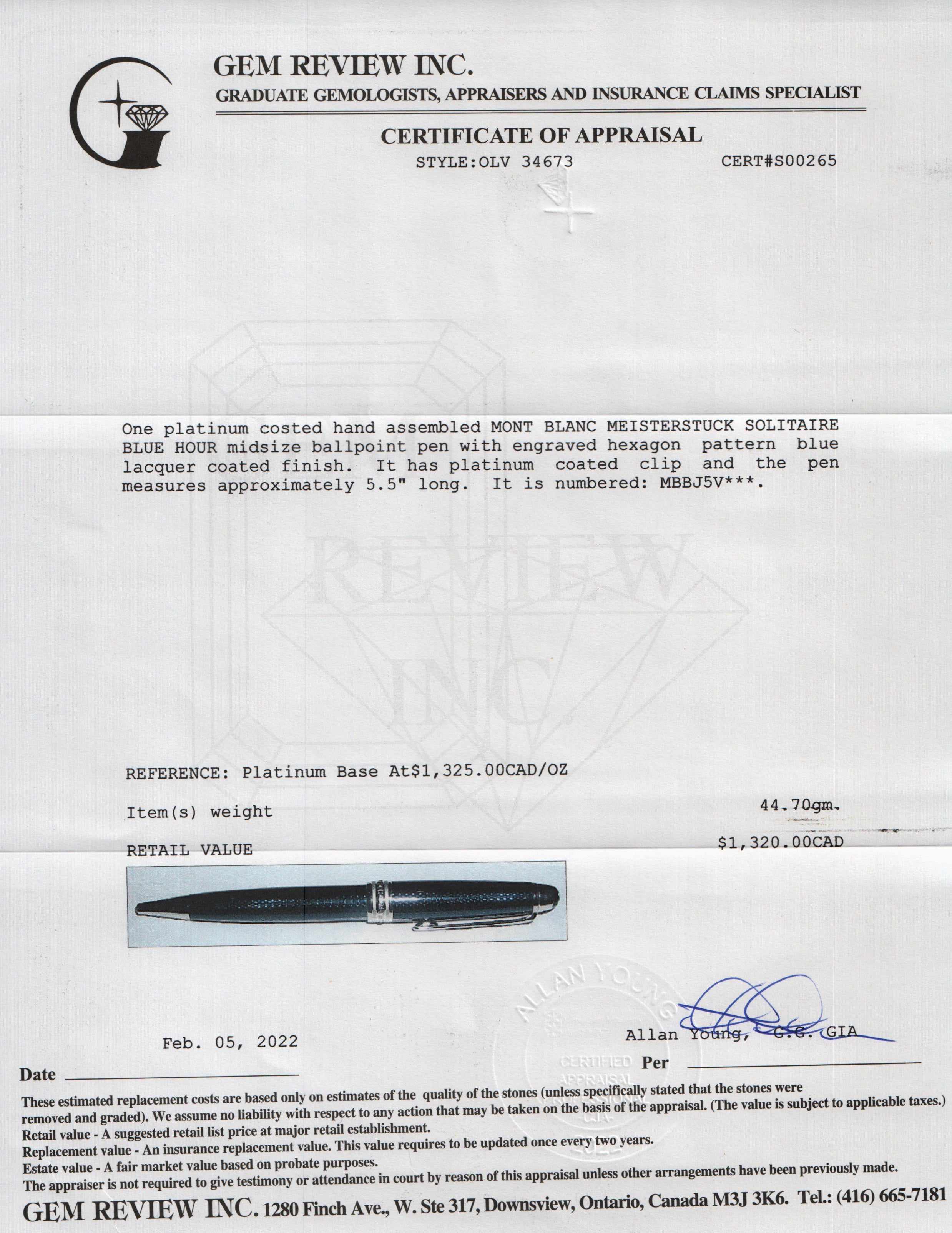 Included items: Original Montblanc Box & Gem Review Appraisal