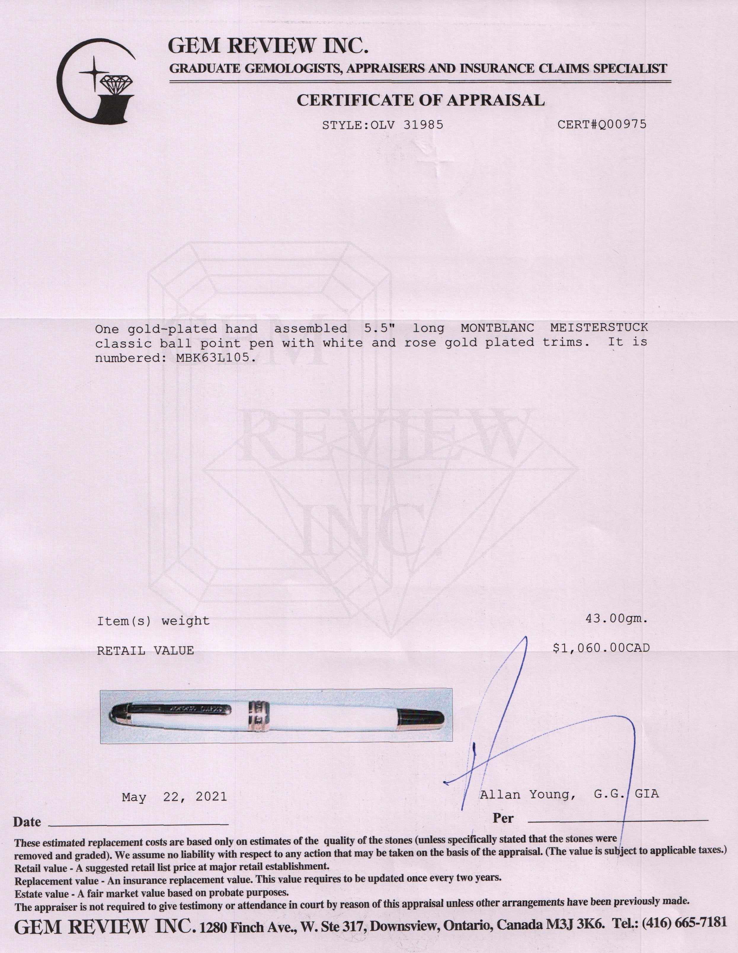 Included items: Original Montblanc Box & Gem Review Appraisal
