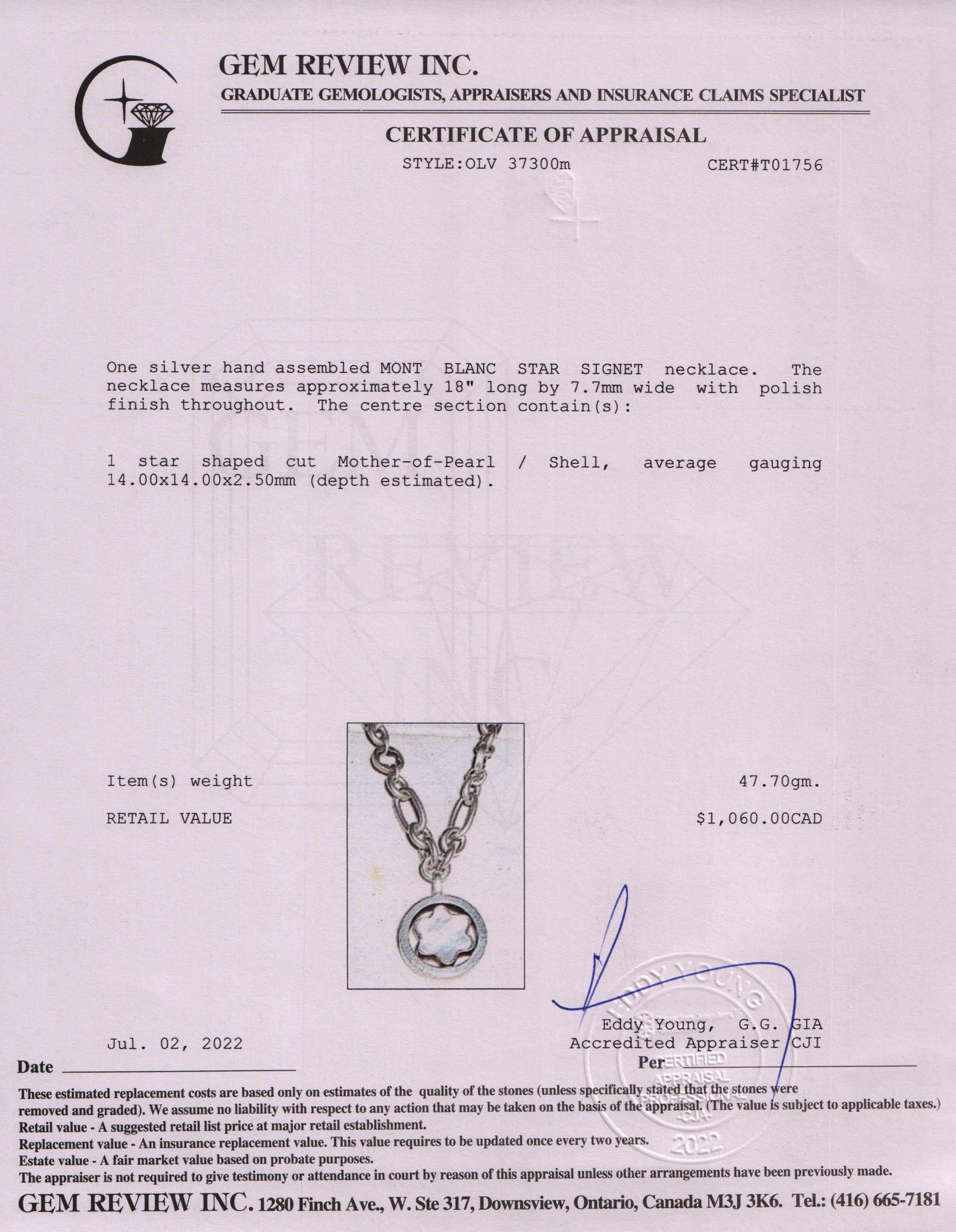 Included Items: Original Montblanc Box and Gem Review Appraisal