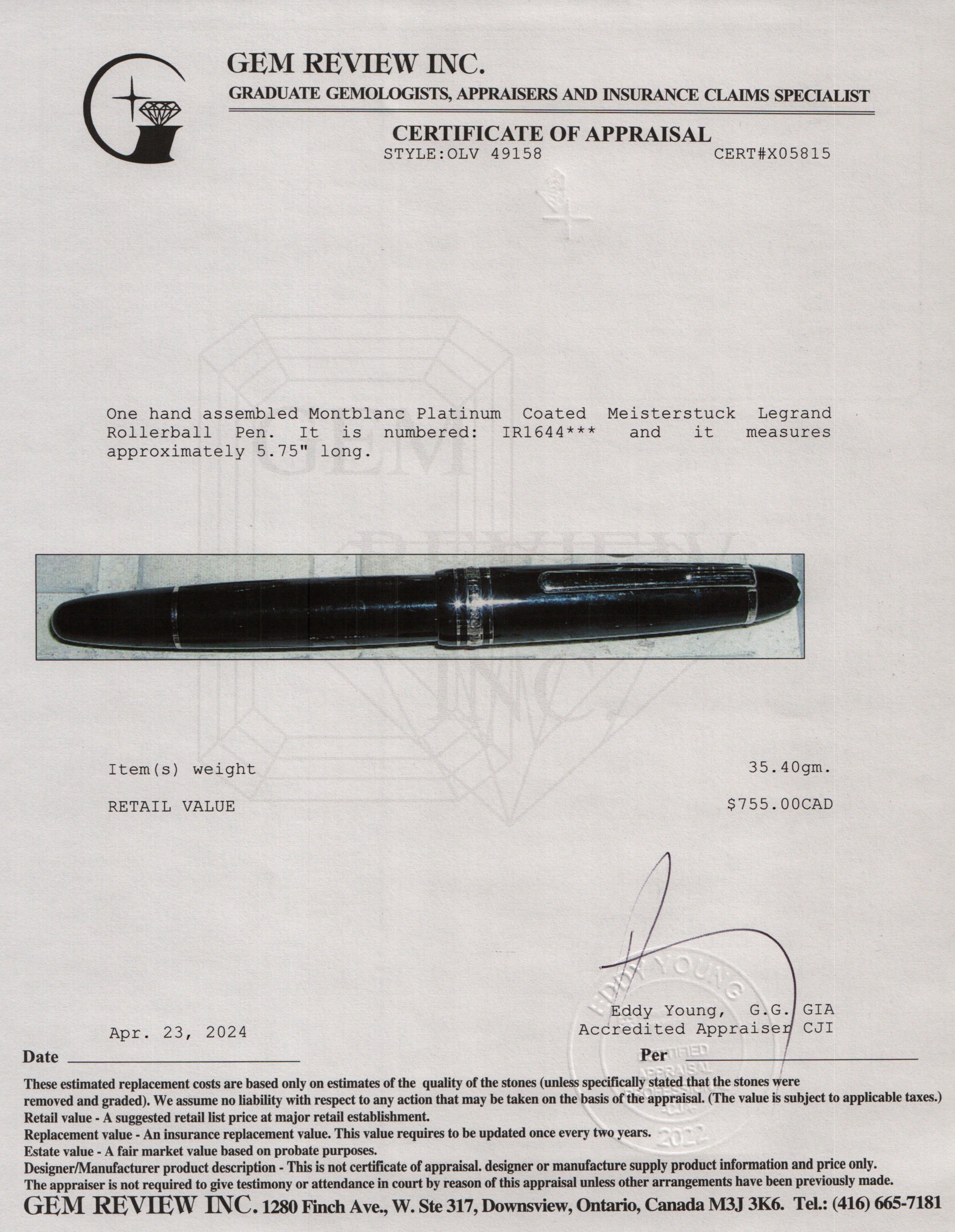 Platinum Coated Meisterstuck Legrand Rollerball Pen