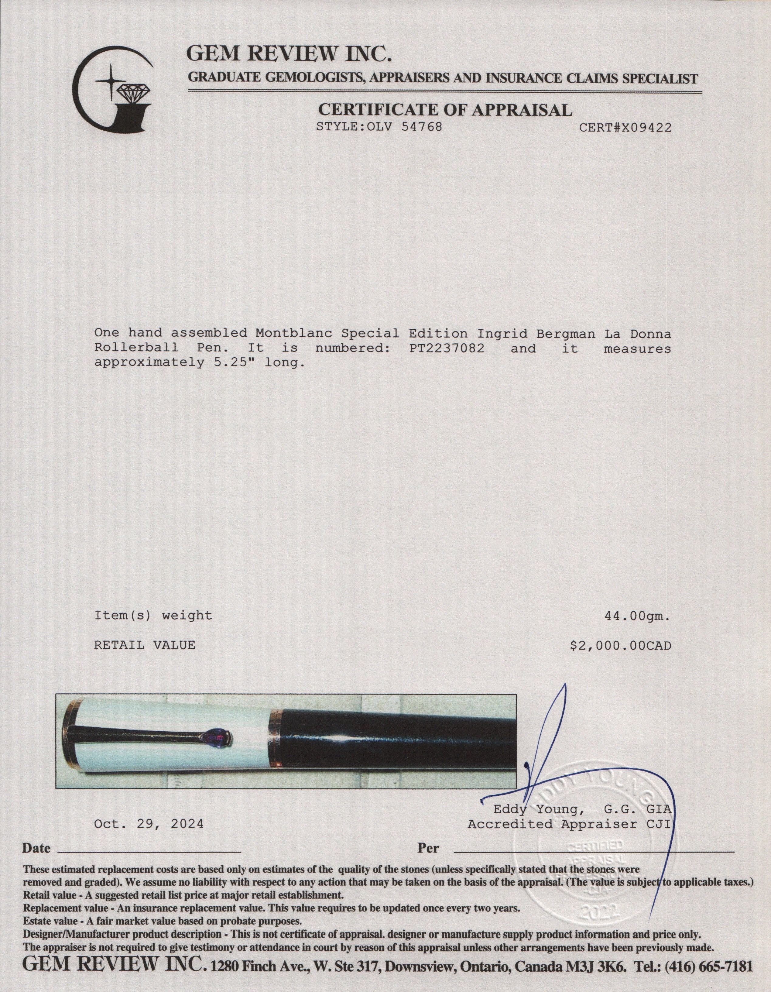 Special Edition Ingrid Bergman La Donna Rollerball Pen w/ Box