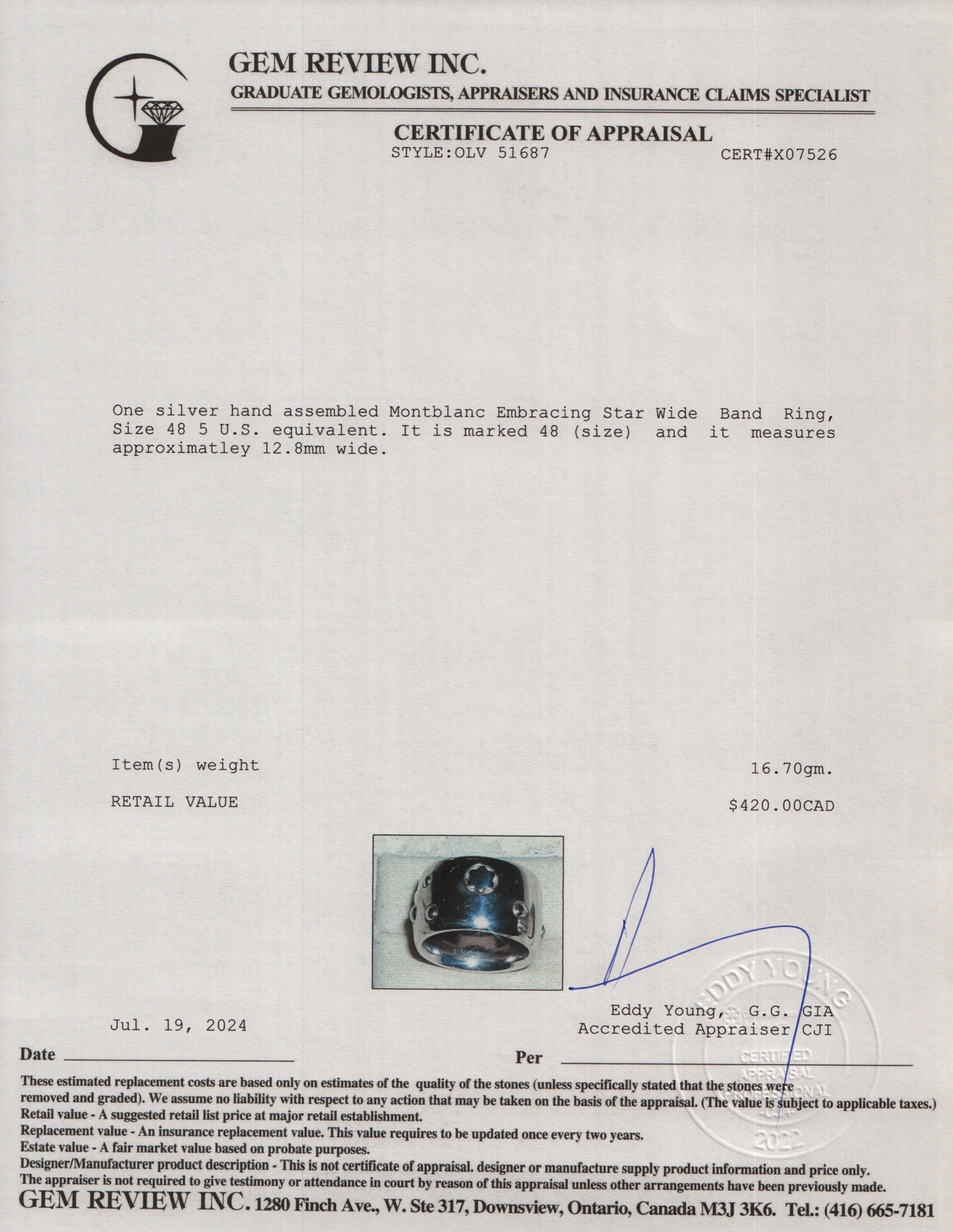 Montblanc Sterling Silver Embracing Star Wide Band Ring, Size 48 5