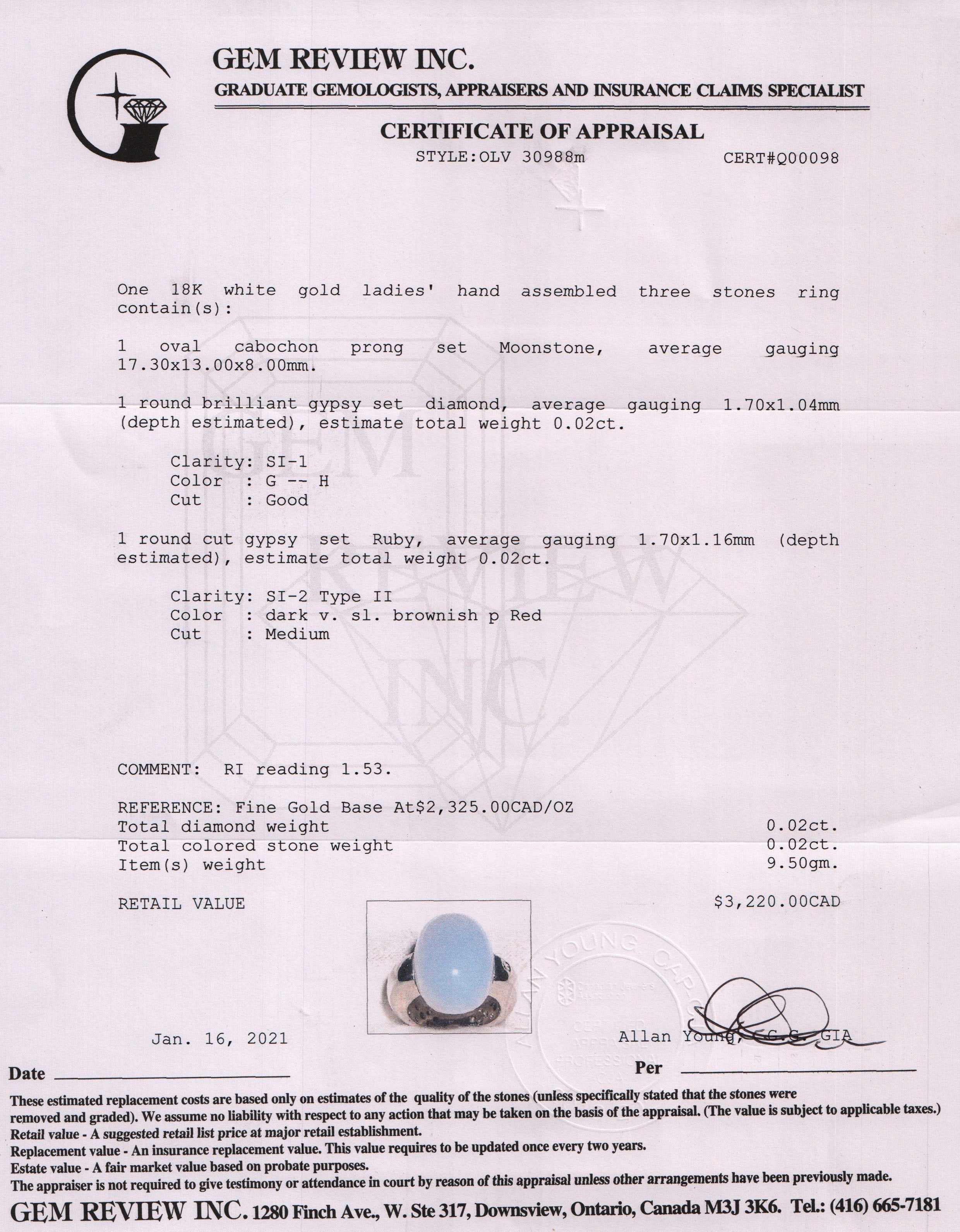 - 1 Oval Cabochon Moonstone, Approximately 17.30 x 13 x 8 mm