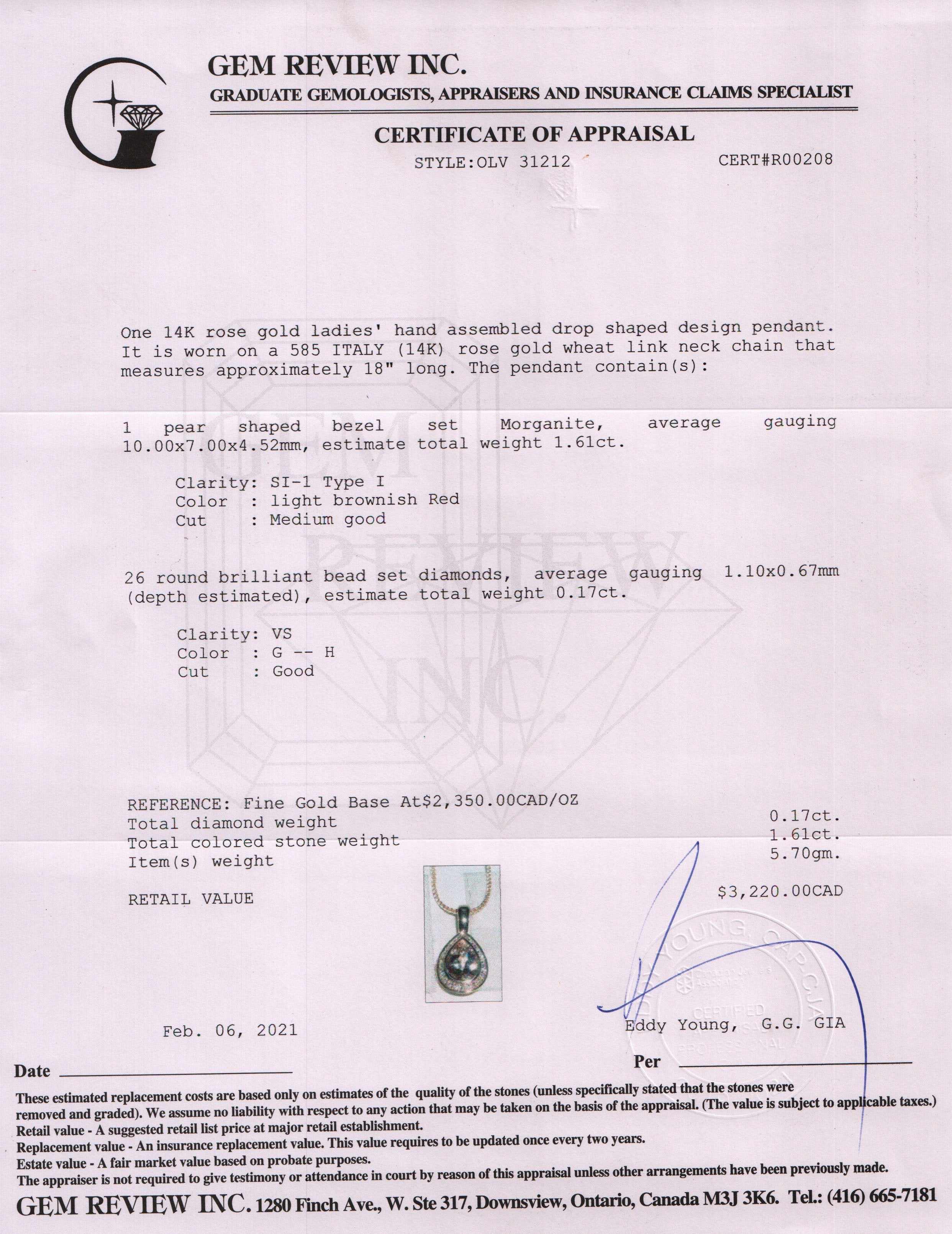 - 1 Pear Shaped Bezel Set Morganite Weighing Approximately 1.61 ct.