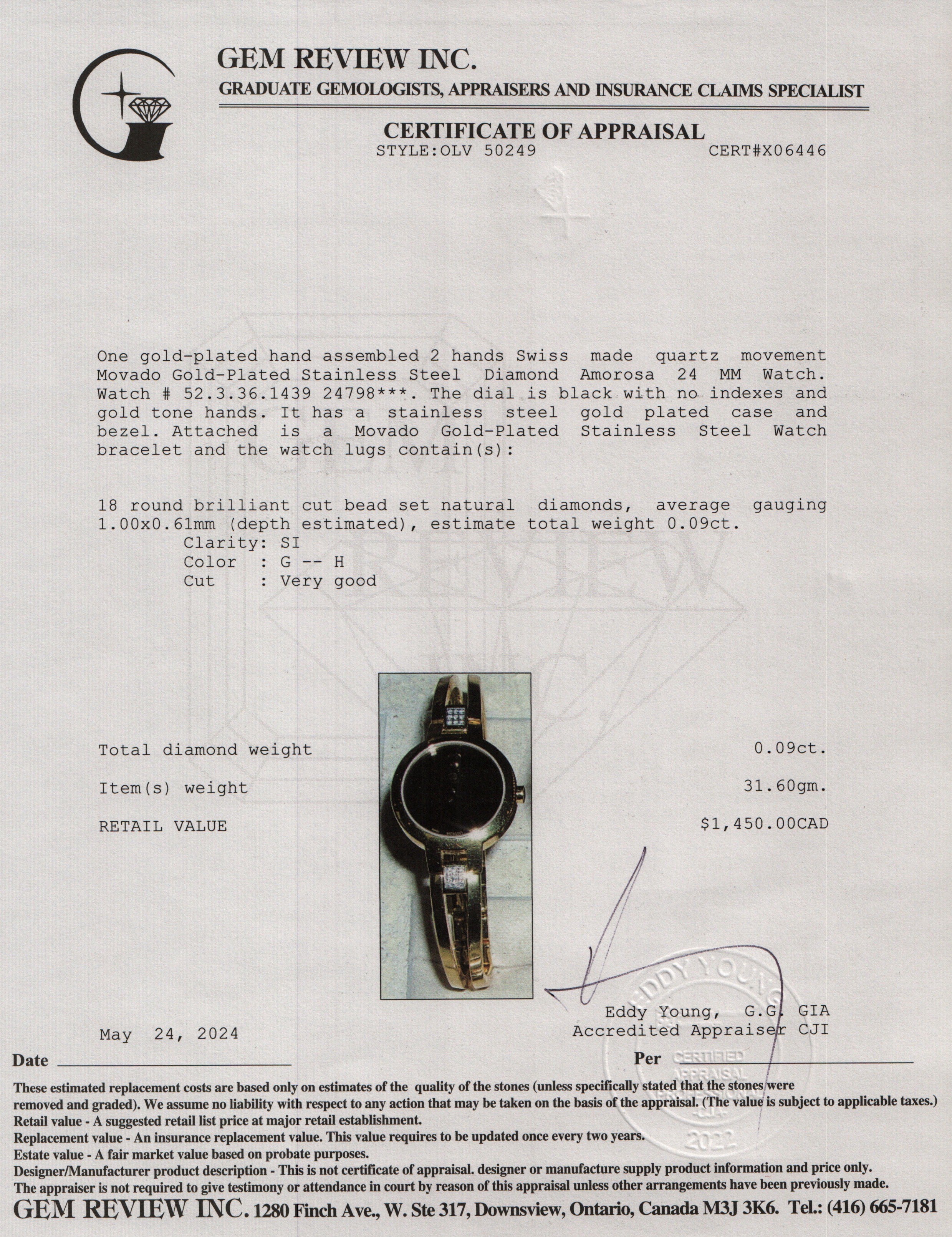 Gold-Plated Stainless Steel Diamond Amorosa 24 MM Watch w/ Box