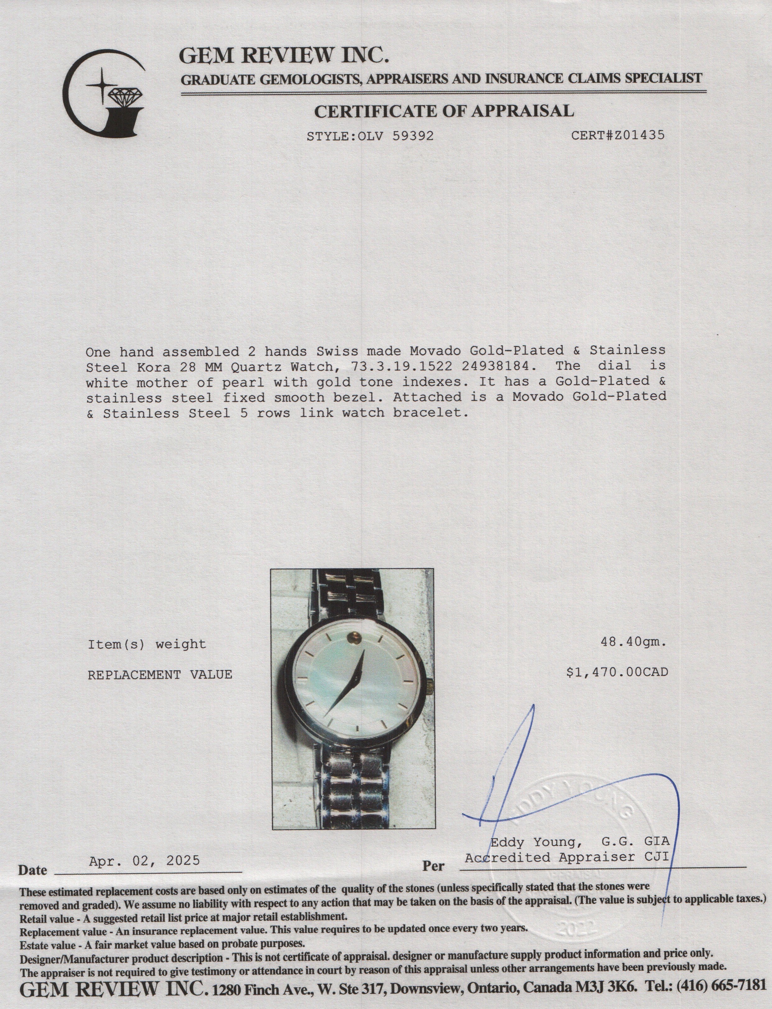 Gold-Plated & Stainless Steel Kora 28 MM Quartz Watch Mother of Pearl Dial