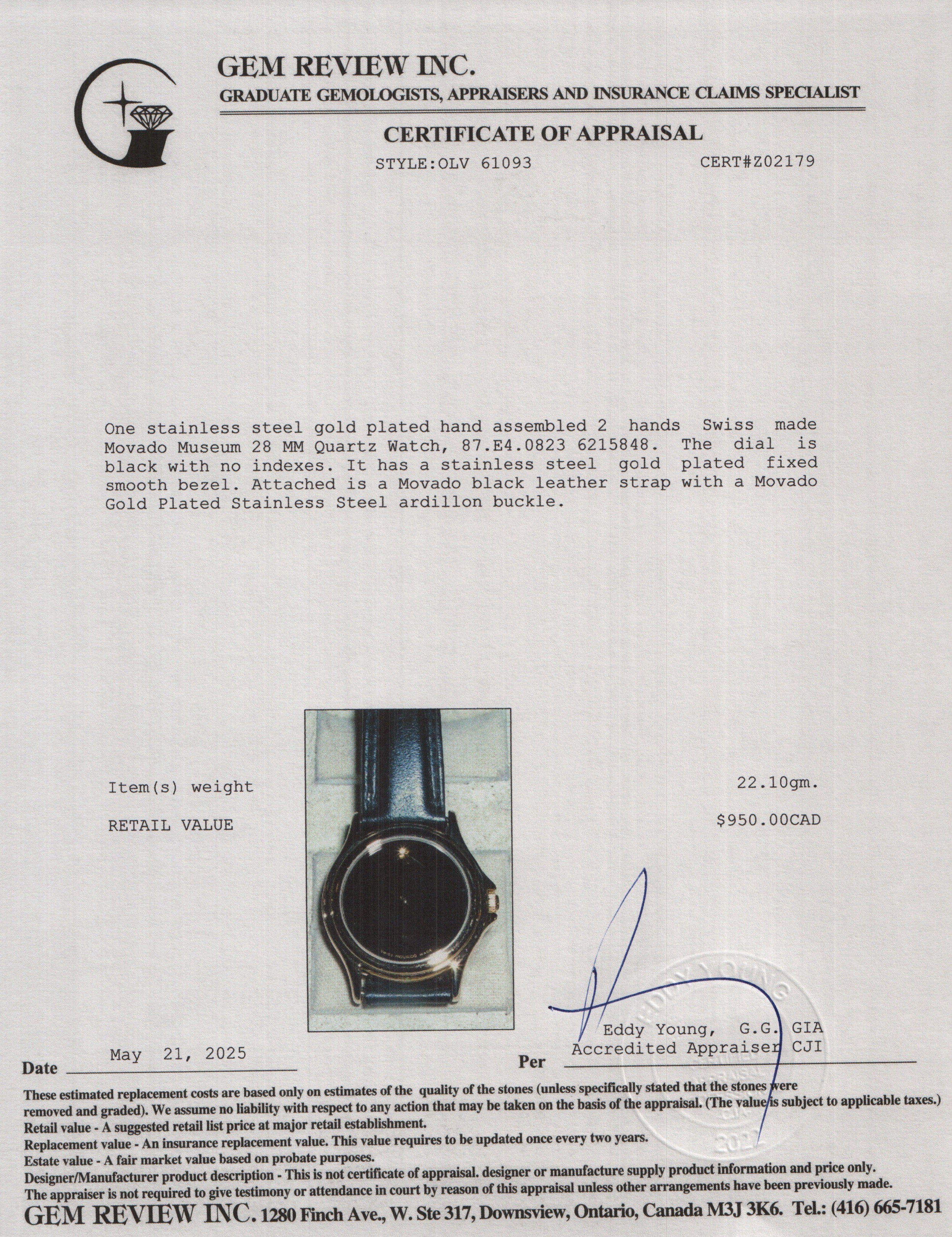 Gold Plated Stainless Steel Museum 28 MM Quartz Watch