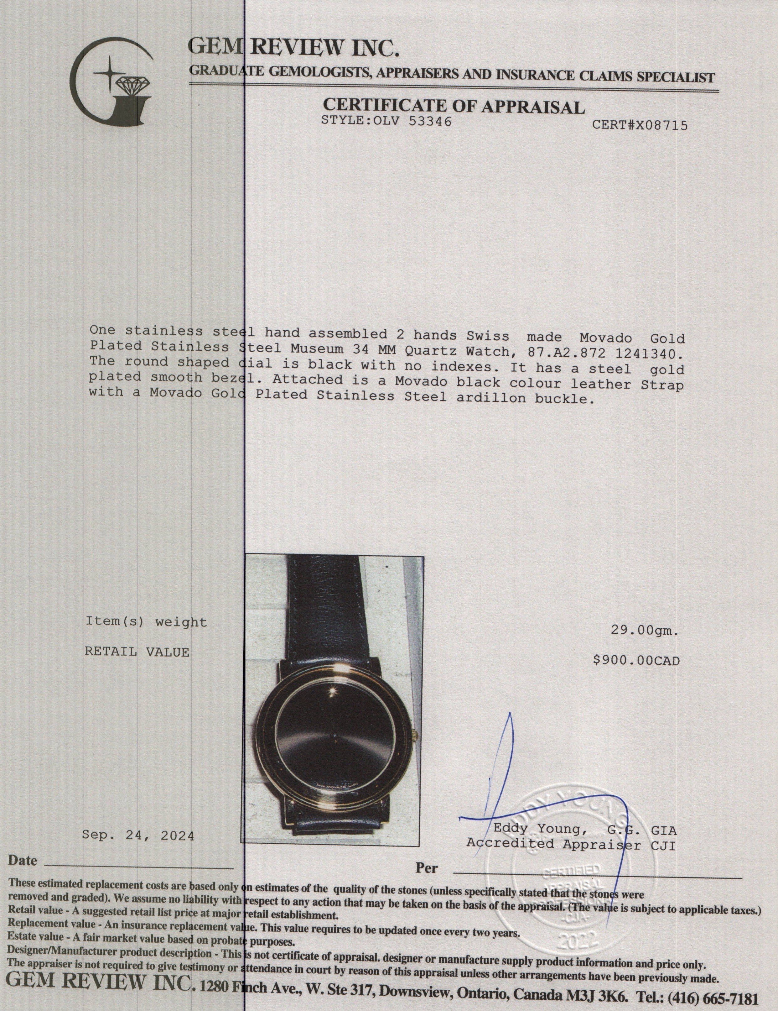 Gold Plated Stainless Steel Museum 34 MM Quartz Watch