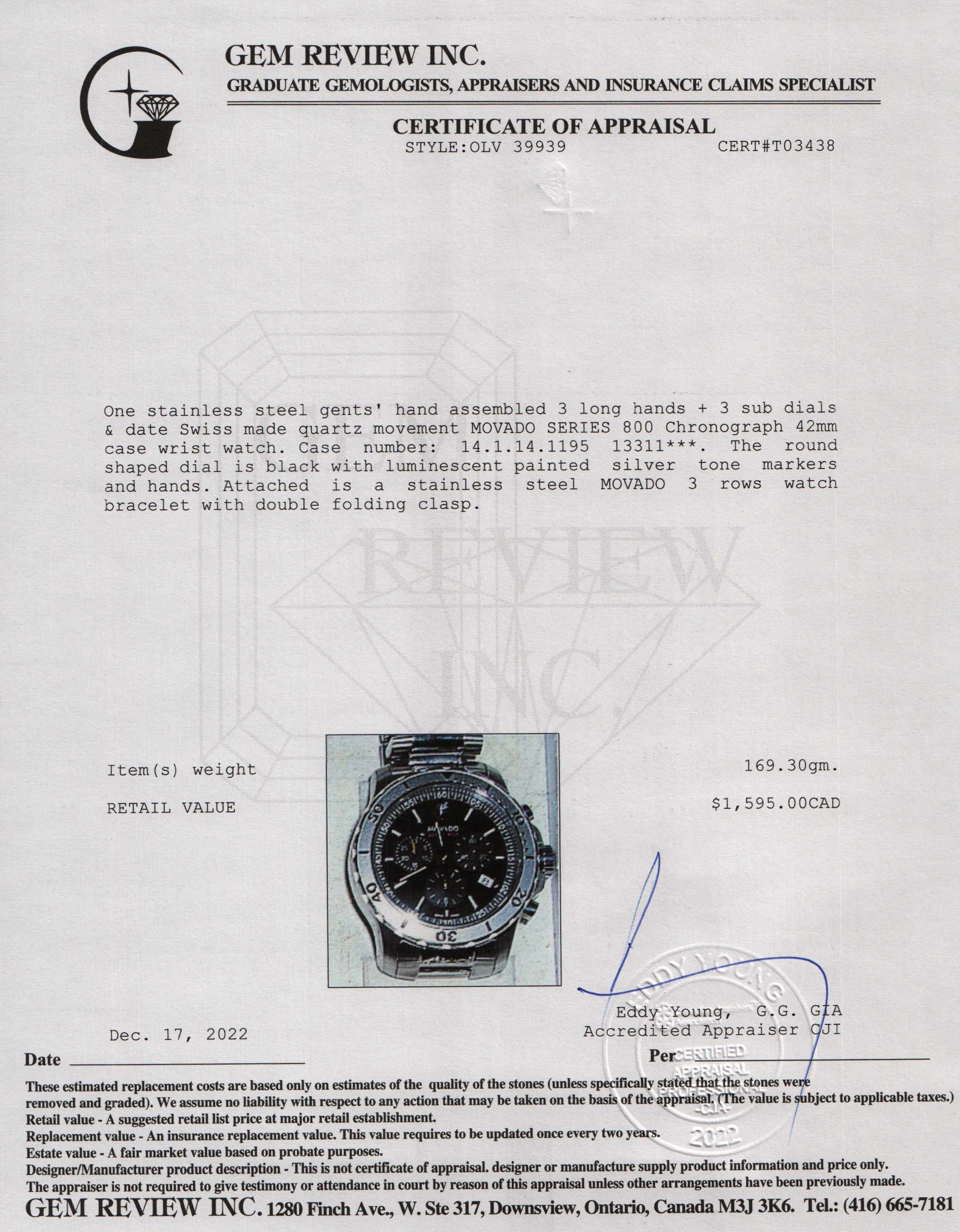 Included Items: Original Movado Box, Booklet & Gem Review Appraisal