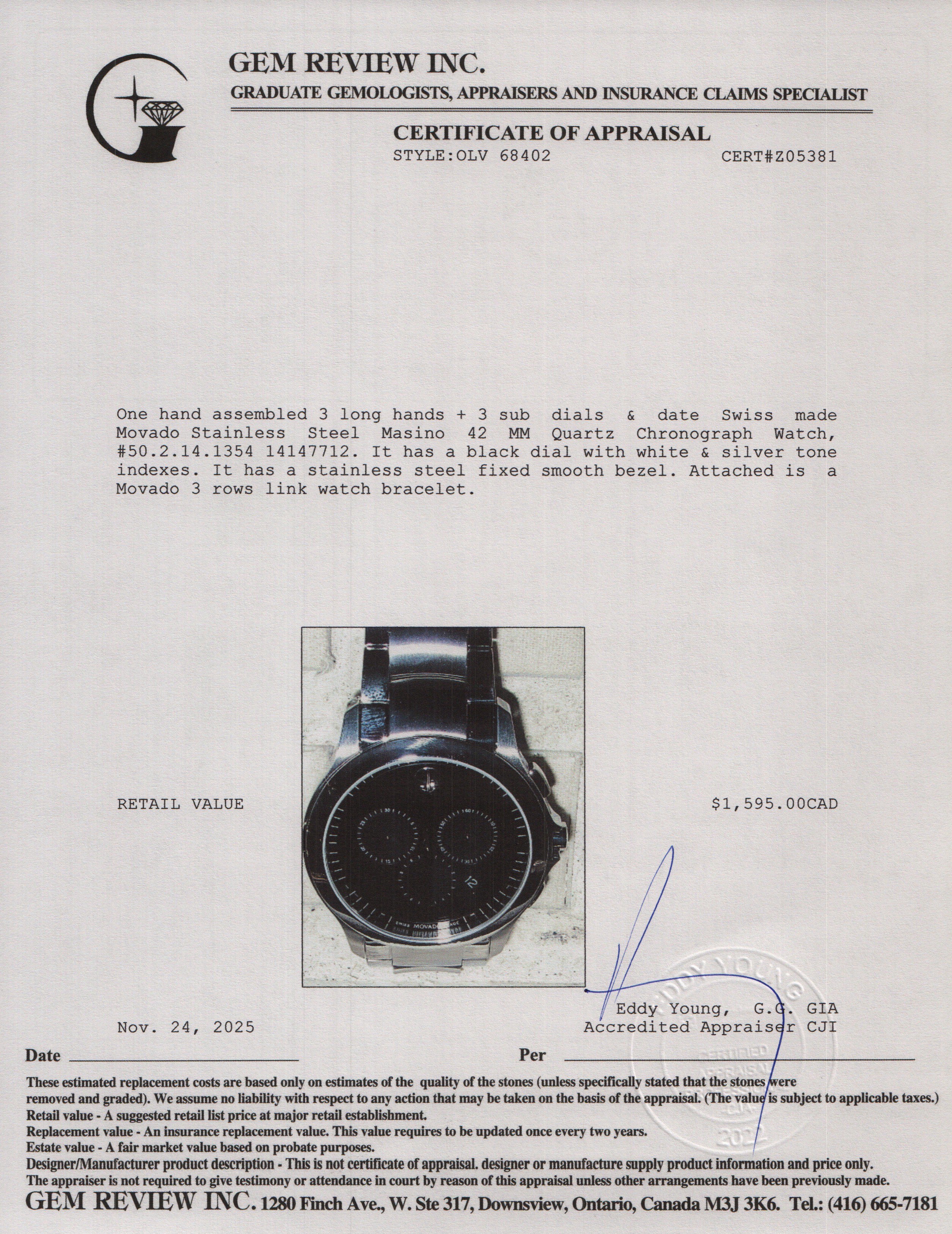 Stainless Steel Masino 42 MM Quartz Chronograph Watch Black Dial