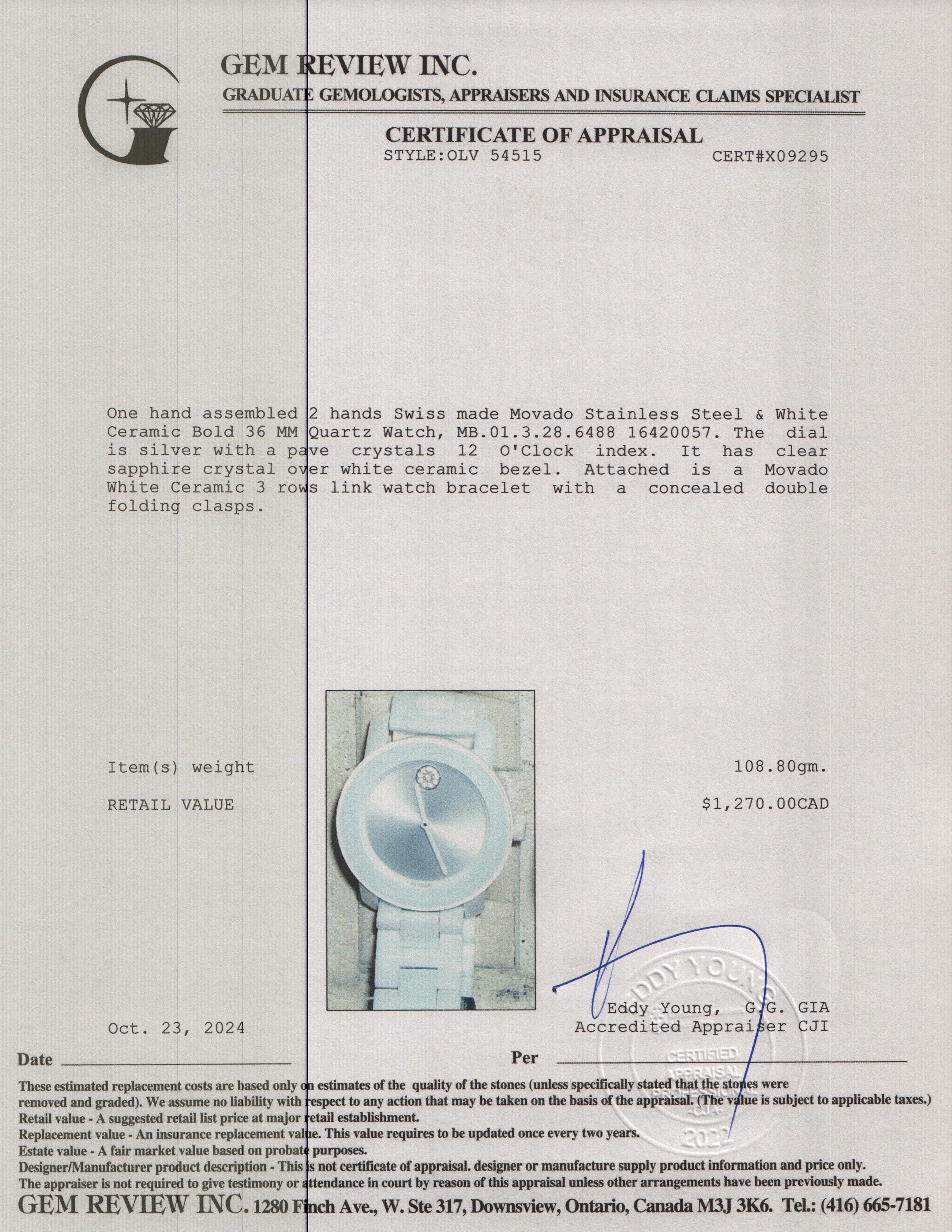 Stainless Steel & White Ceramic Bold 36 MM Quartz Watch