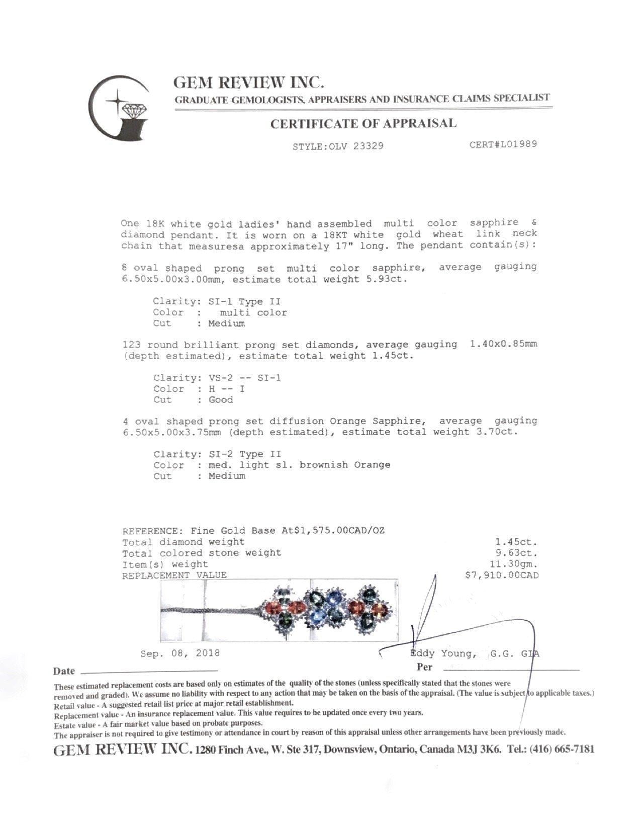 Multi Colour Sapphire and Diamond Pendant Necklace