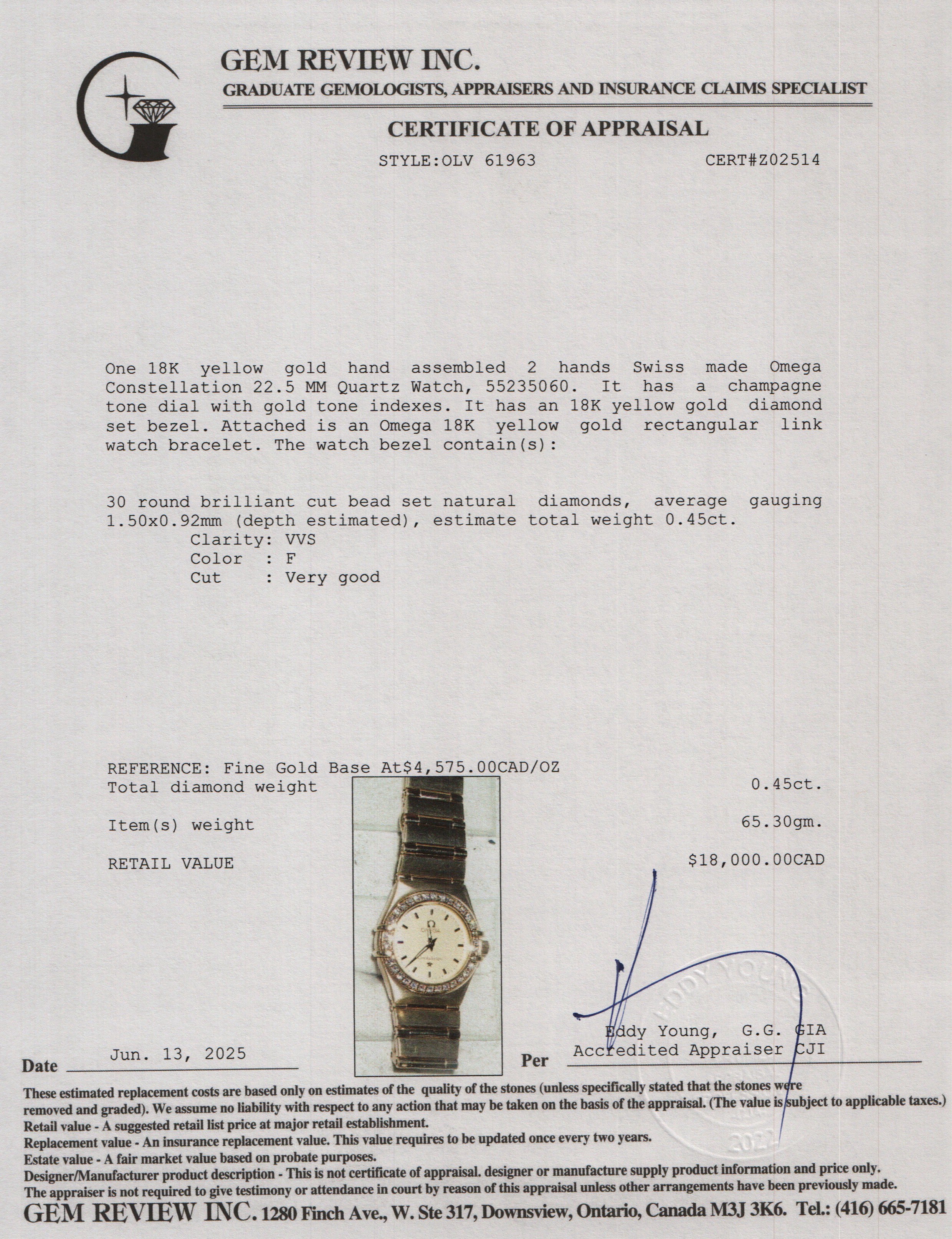 18k Yellow Gold Diamond Bezel Constellation 22.5 MM Quartz Watch w/ Box & Papers