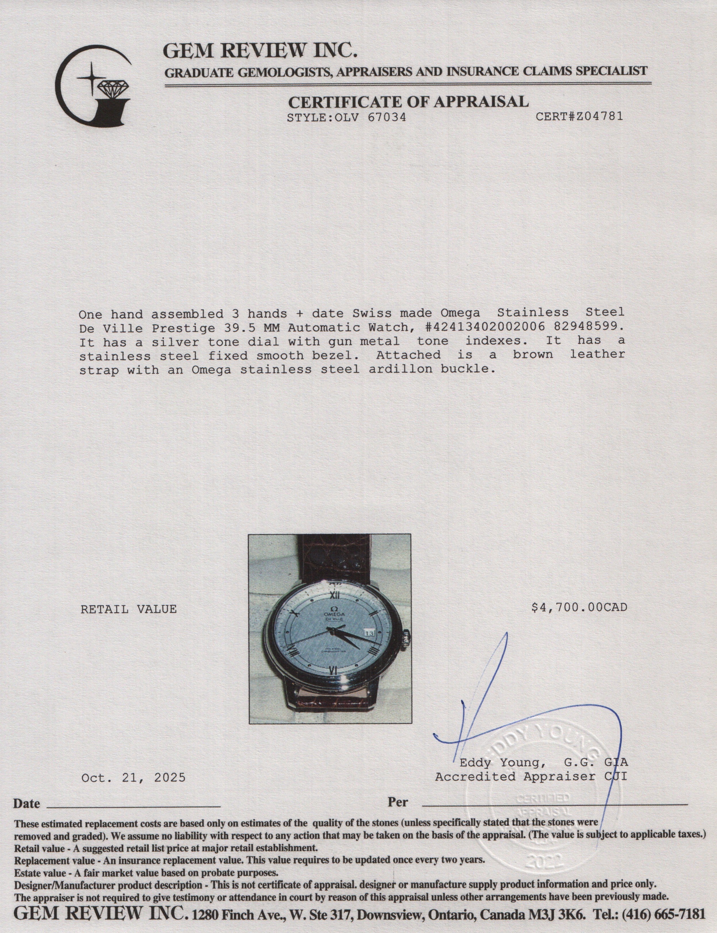 2021 Stainless Steel De Ville Prestige 39.5 MM Automatic Watch Silver Dial w/ Box & Papers