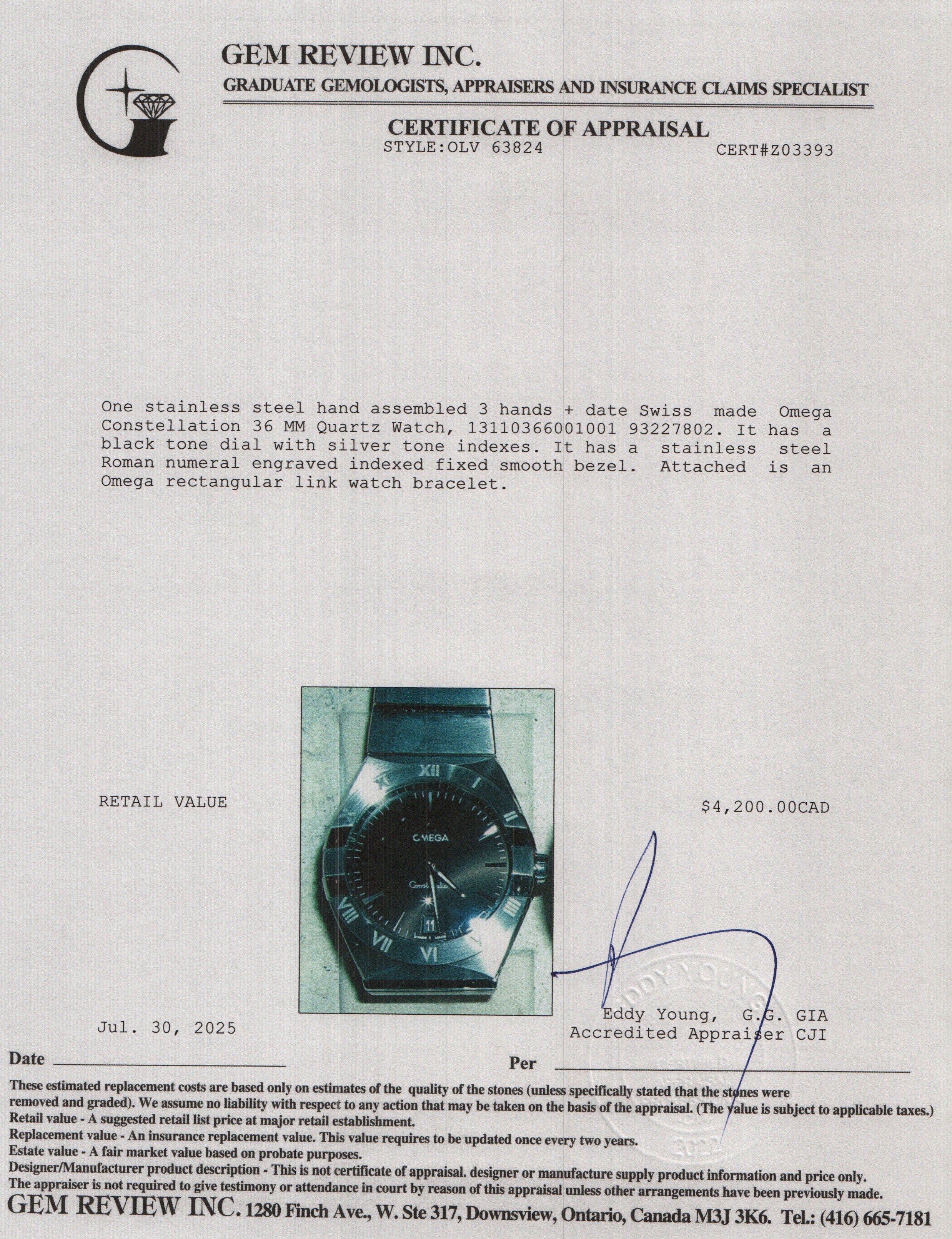 2022 Stainless Steel Constellation 36 MM Quartz Watch Black Dial w/ Box & Papers