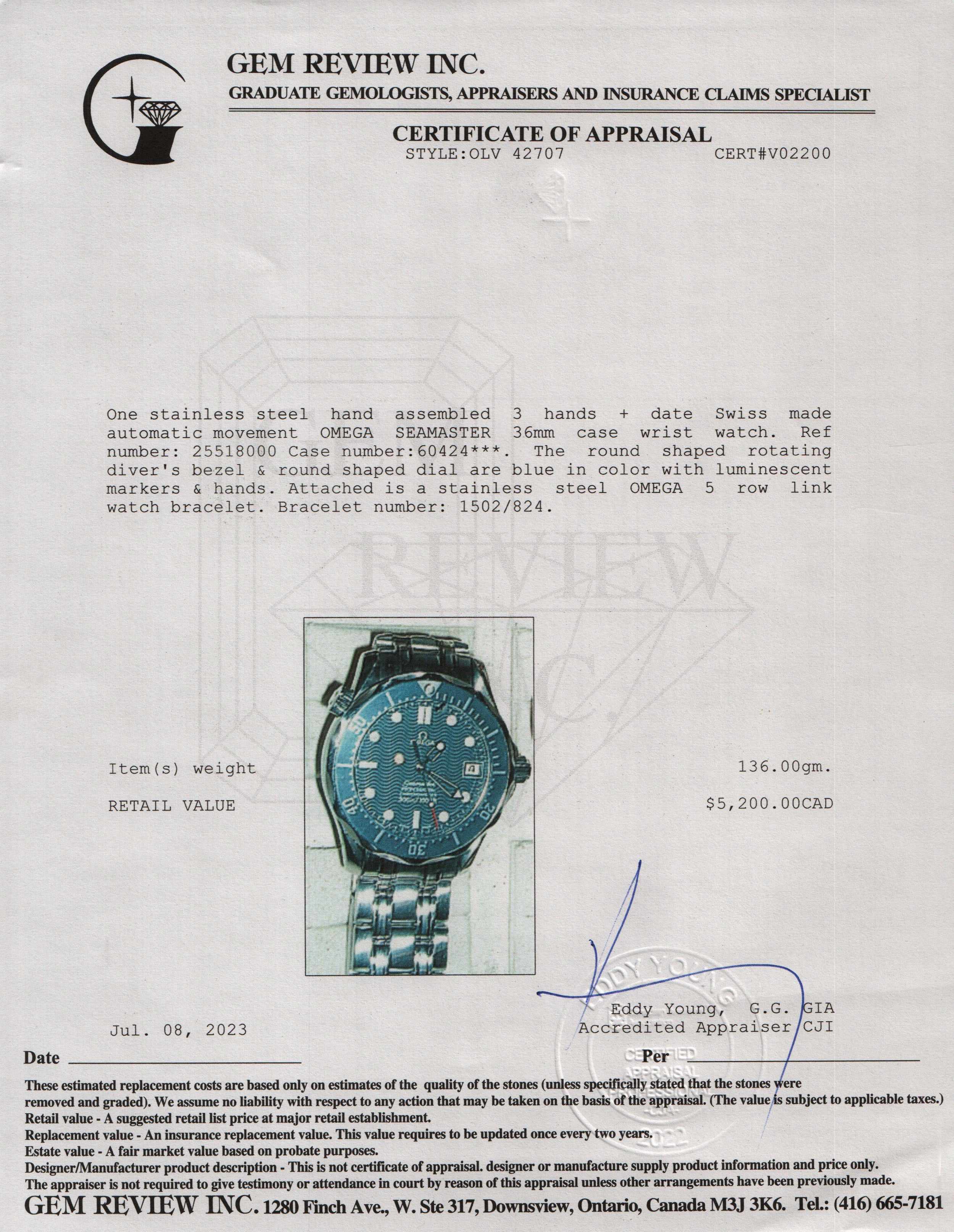 Included Items: Original Omega Box, Card & Gem Review Appraisal