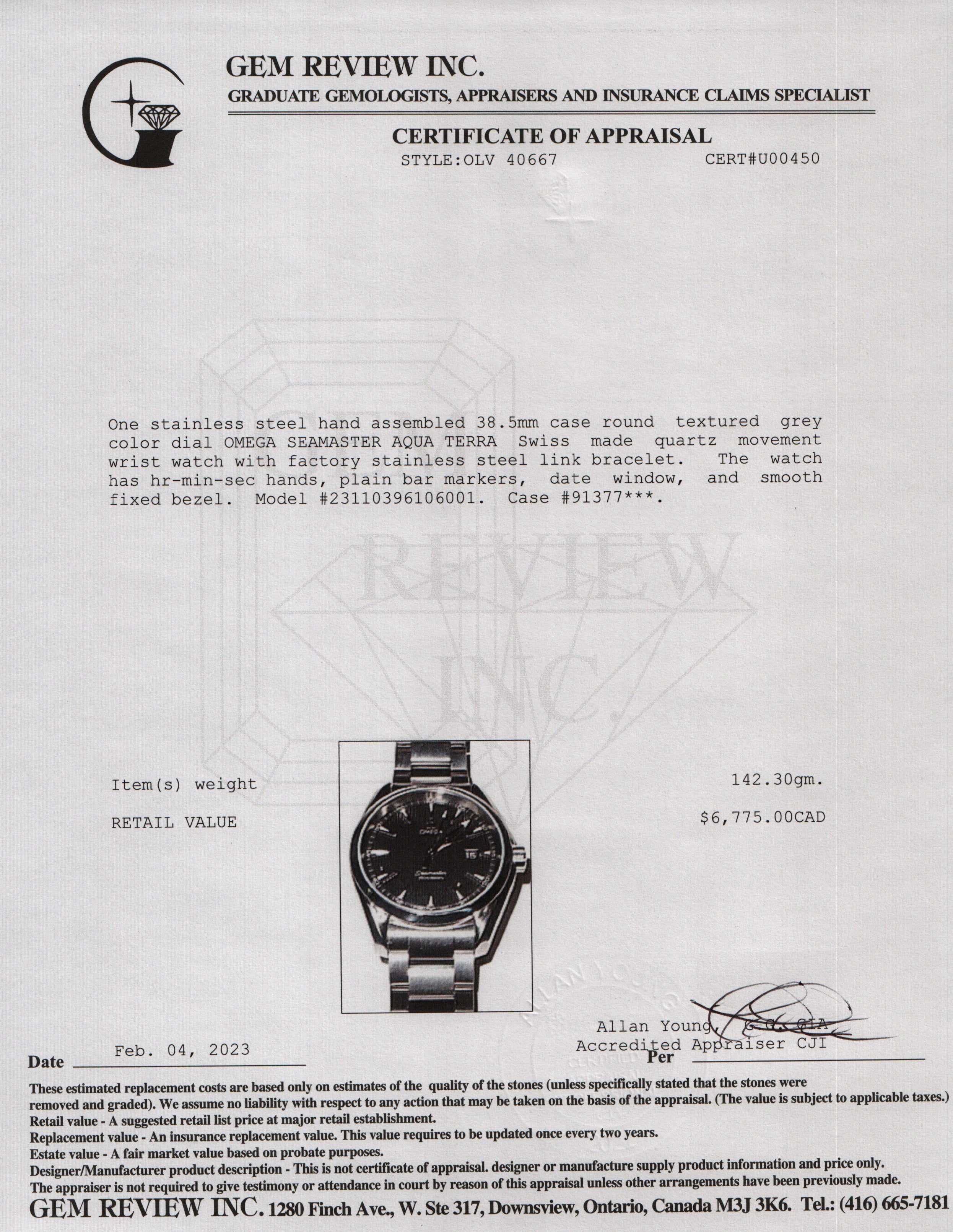 Included Items: Original Omega Box, Tag & Gem Review Appraisal