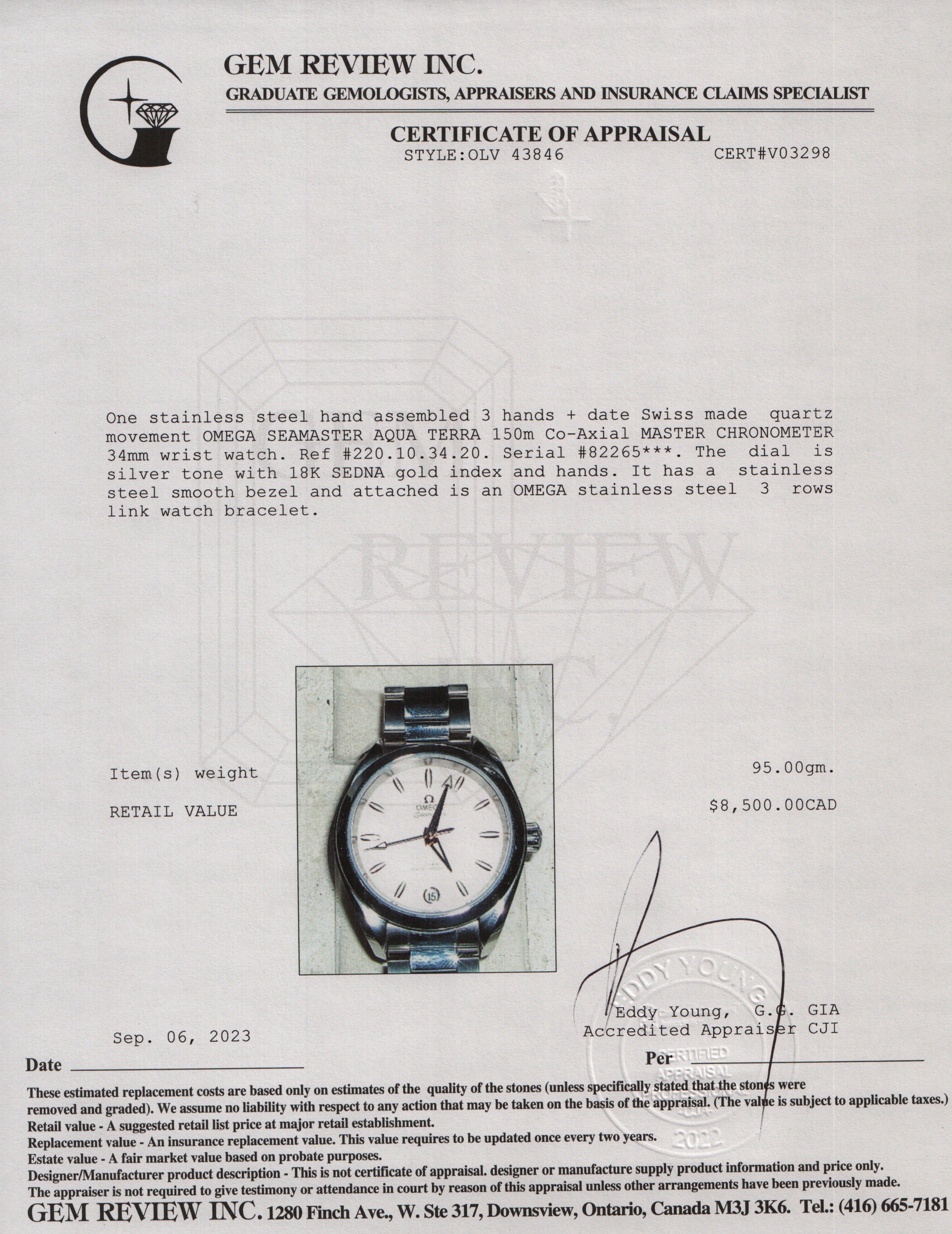 Seamaster Aqua Terra Master Chronometer 34 MM Watch w/ Box