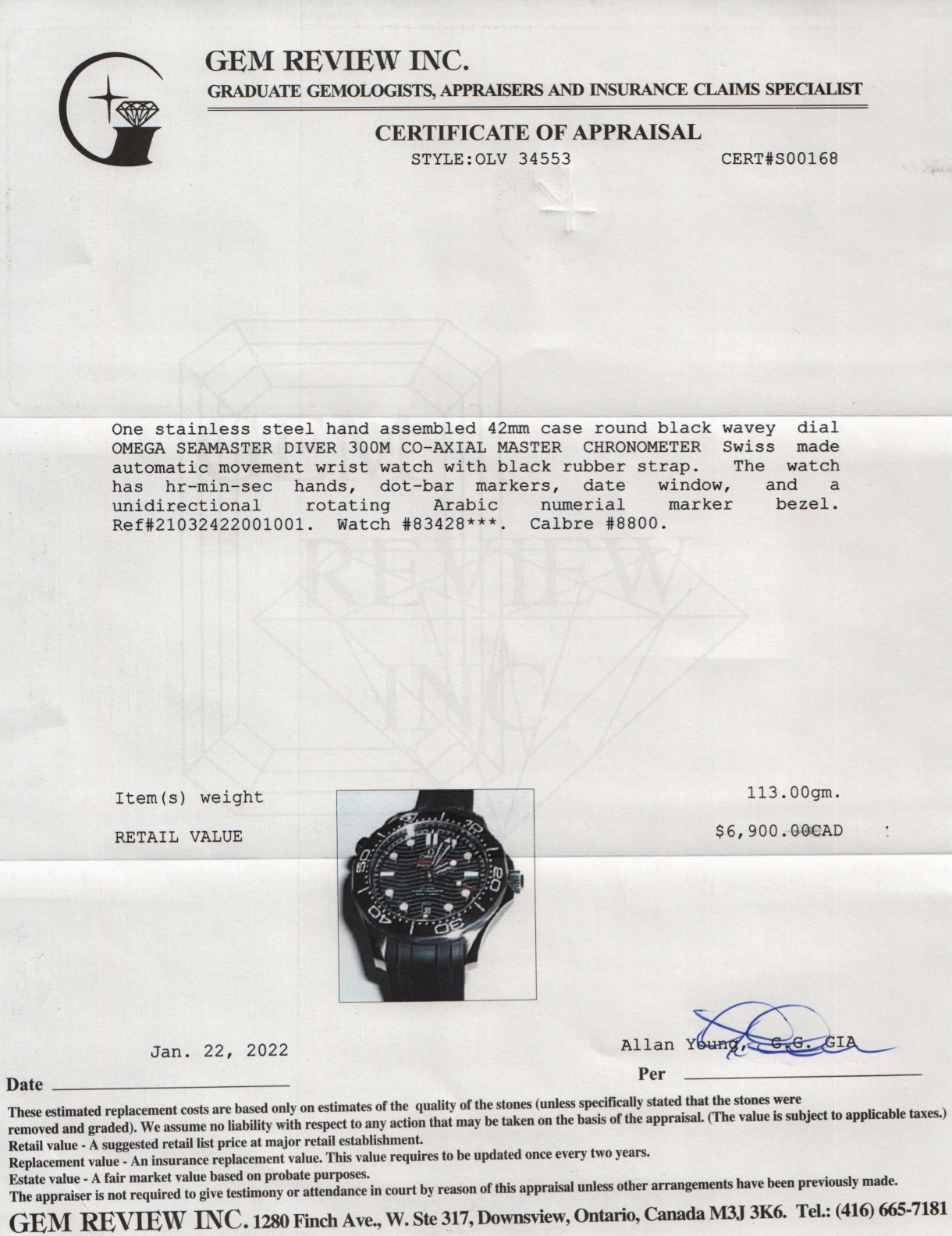 Included Items: Original Omega Box, Tag, Booklet, Authenticity Card, Warranty Card, Gem Review Appraisal