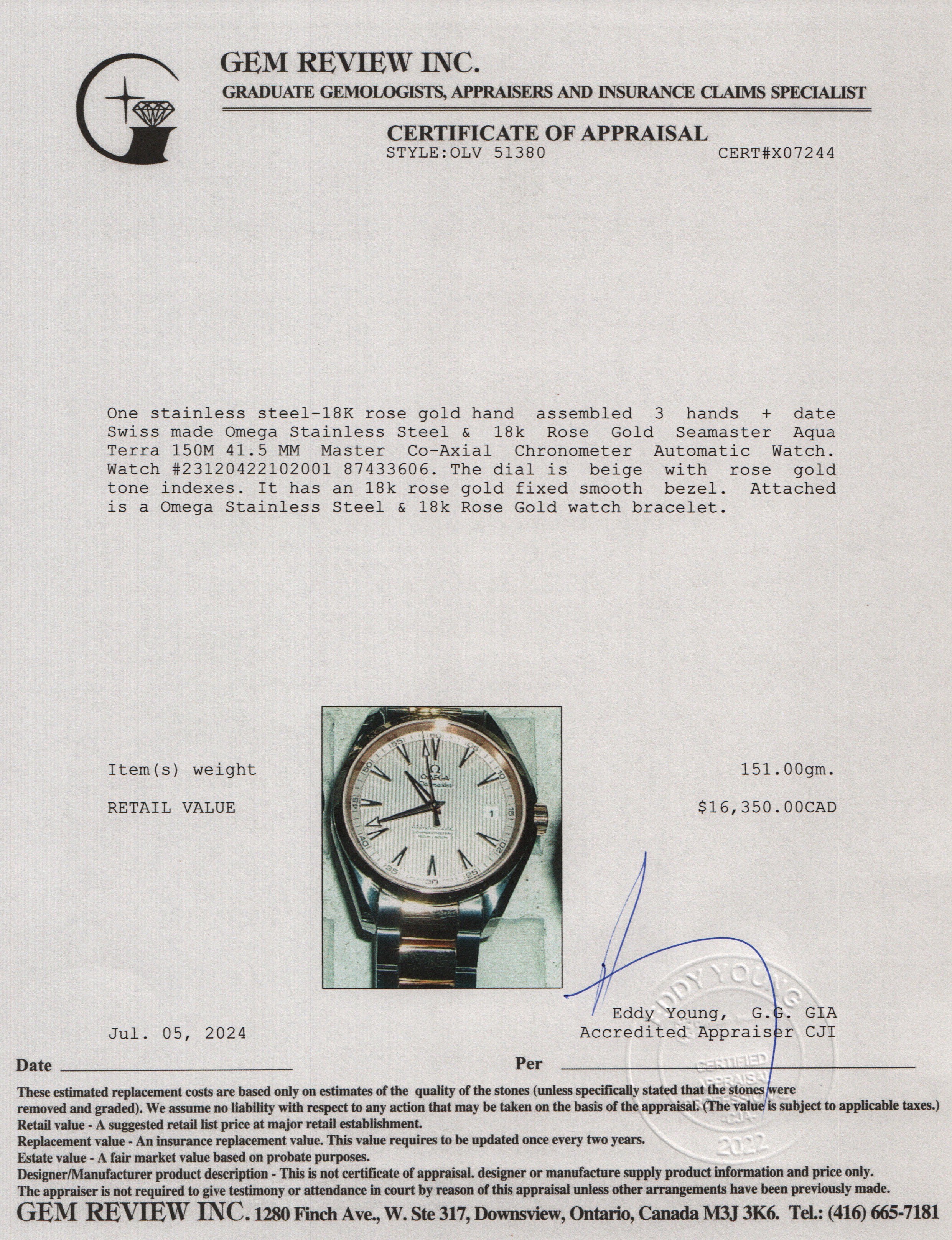 Stainless Steel & 18k Rose Gold Seamaster Aqua Terra 150M 41.5 MM Master Co-Axial Chronometer Automatic Watch w/ Box & Papers
