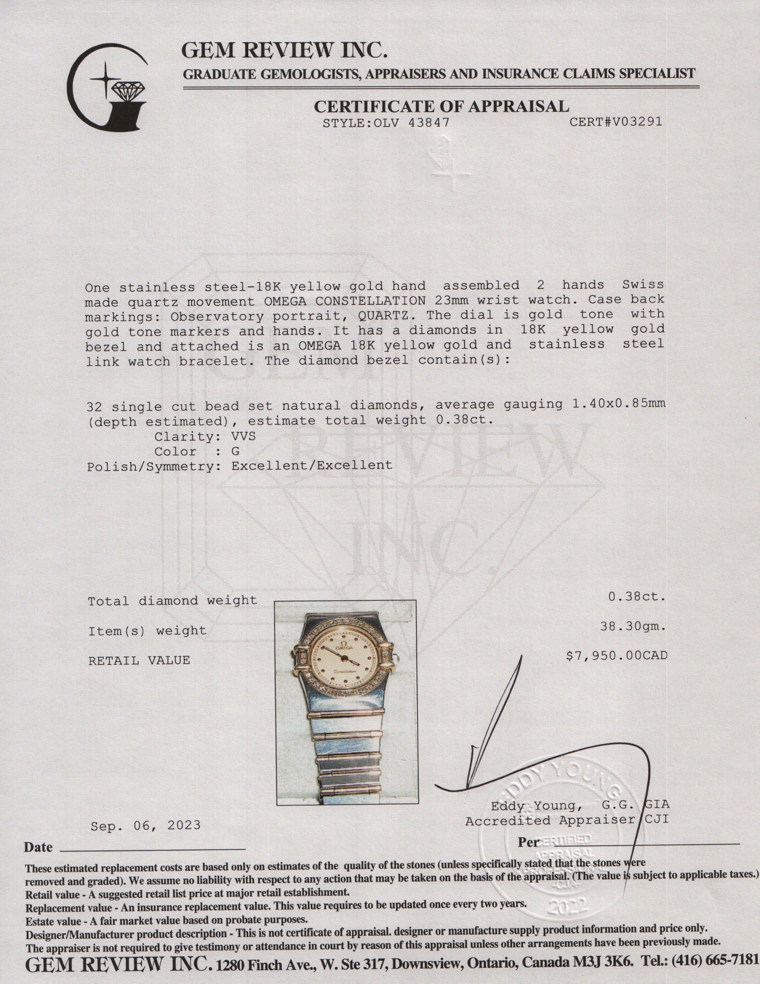 Stainless Steel & 18k Yellow Gold Constellation 23 MM Diamond Bezel Watch