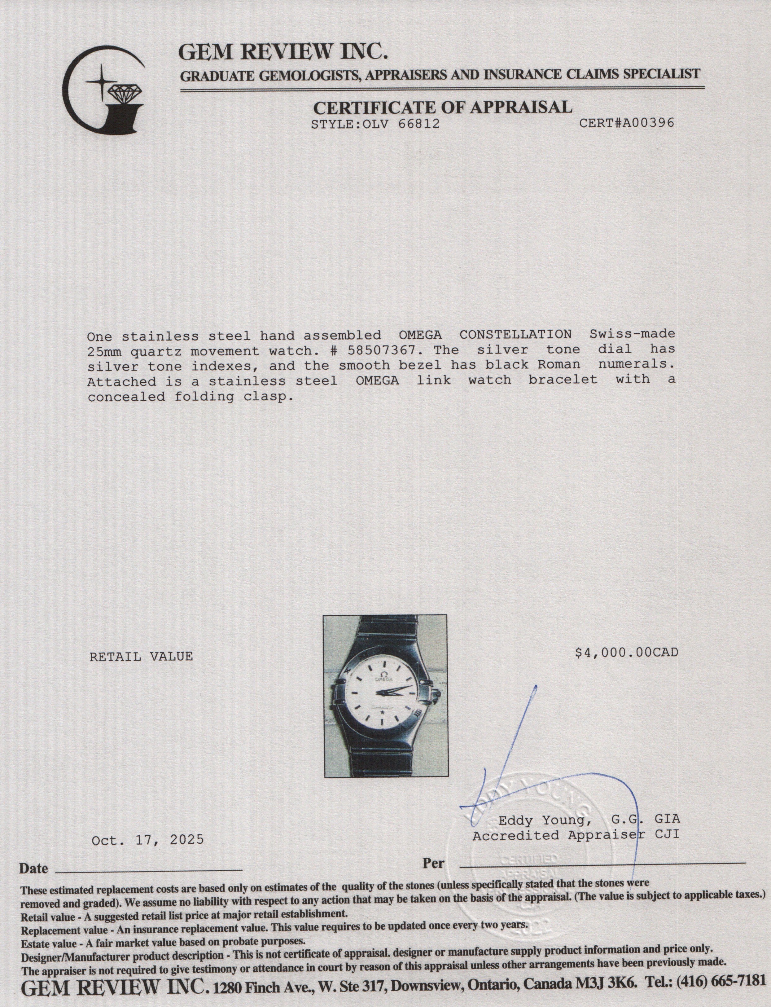 Stainless Steel Constellation 25 MM Quartz Watch Silver Dial