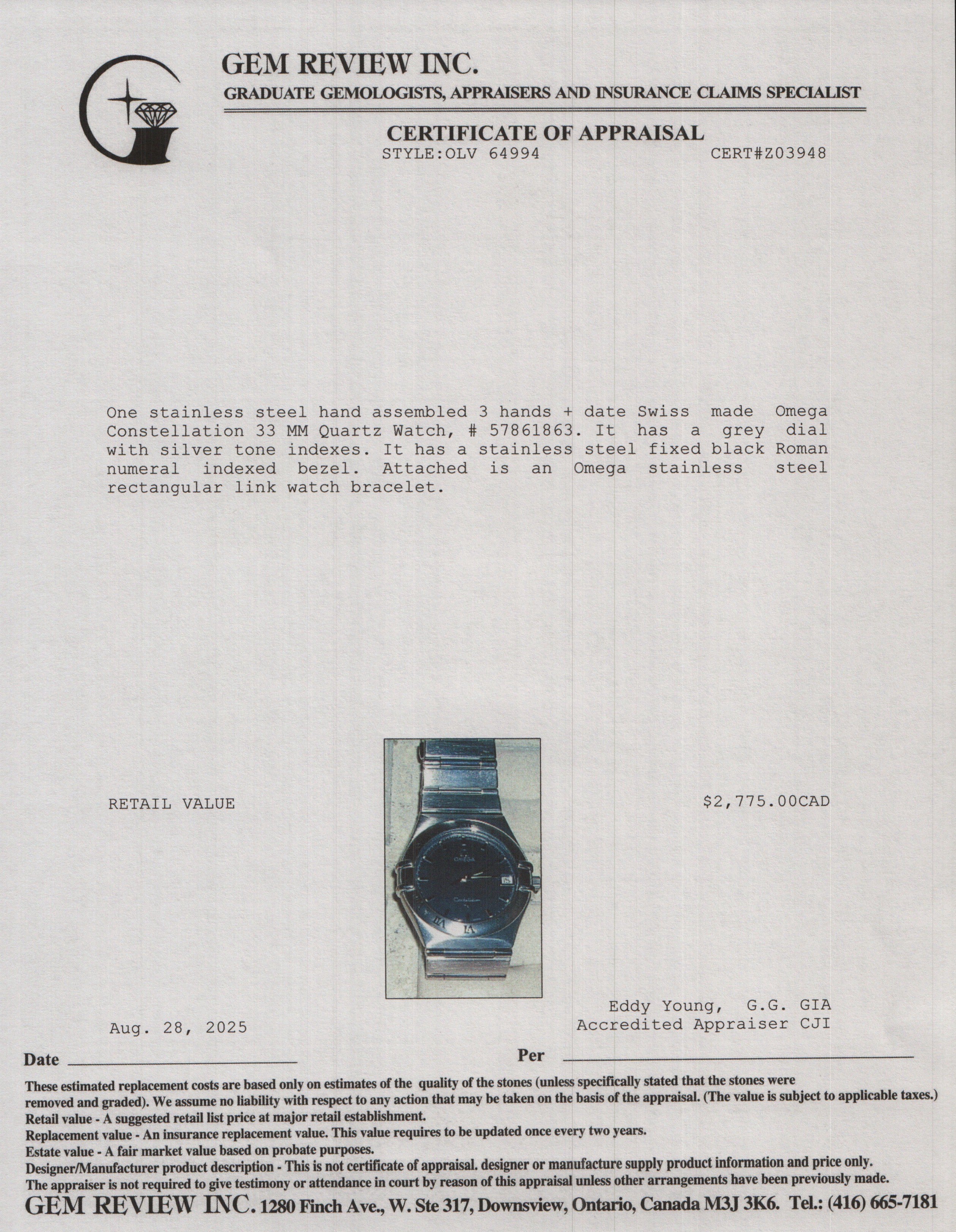 Stainless Steel Constellation 33 MM Quartz Watch Grey Dial