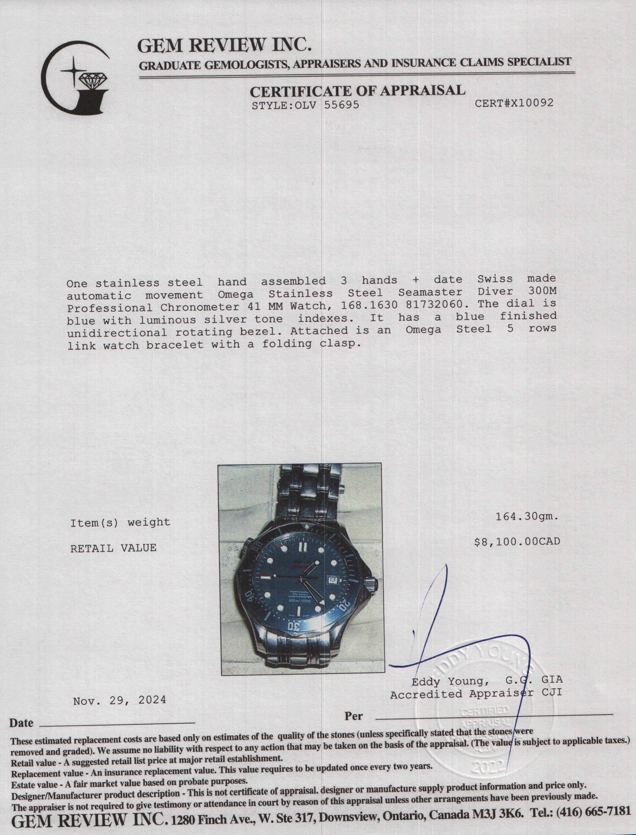 Stainless Steel Seamaster Diver 300M Professional Chronometer 41 MM Watch