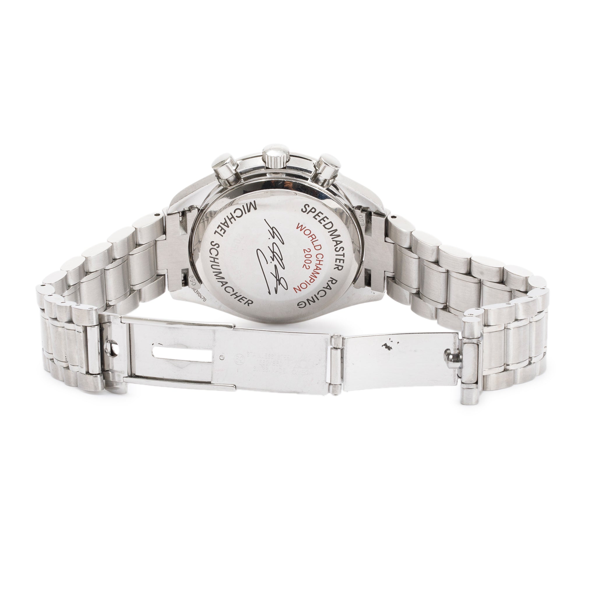 Stainless Steel Speedmaster Day Date Schumacher Carbon Fibre Dial 39MM Automatic Chronograph Watch w/ Box & Papers