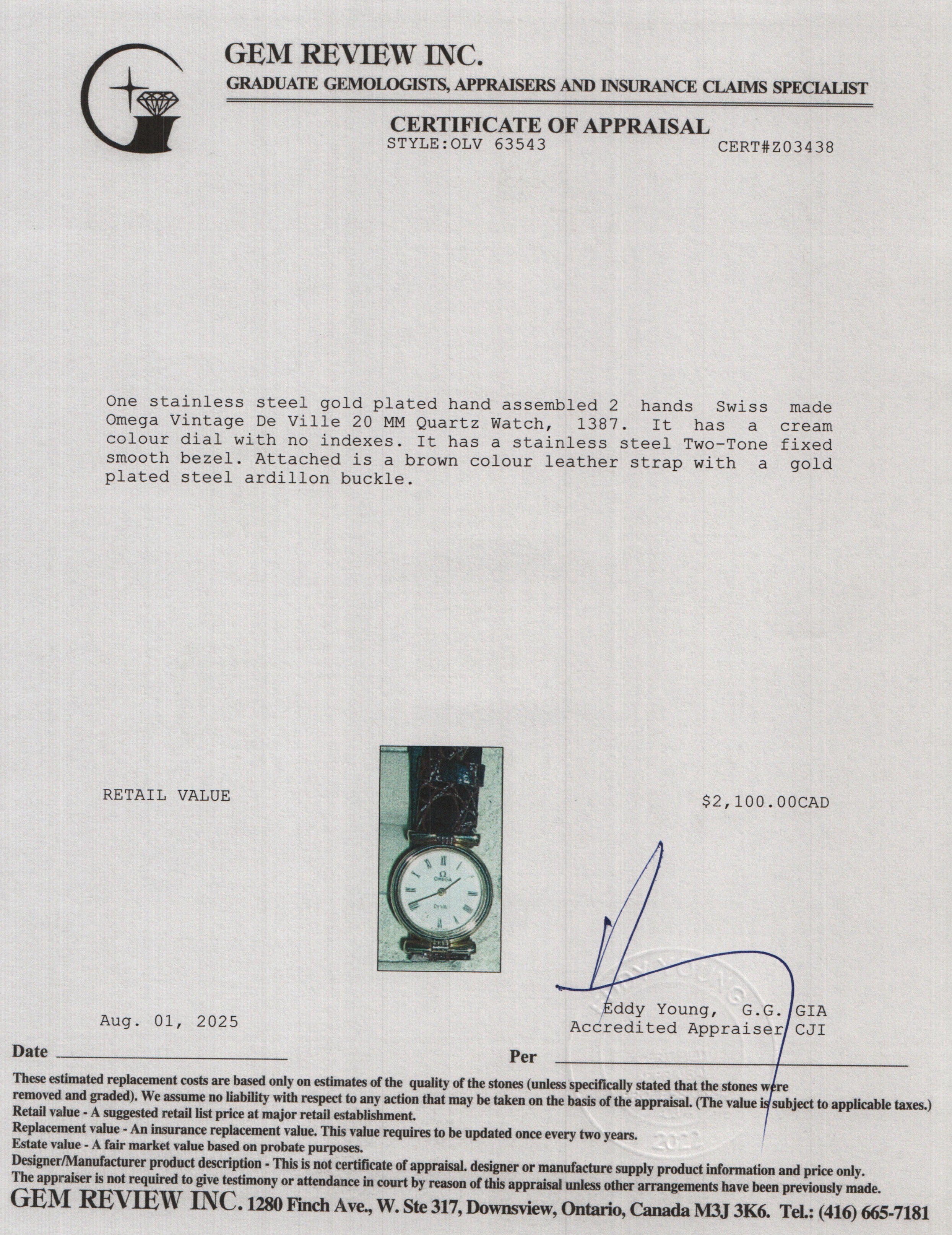 Vintage Gold Plated Stainless Steel De Ville 20 MM Quartz Watch