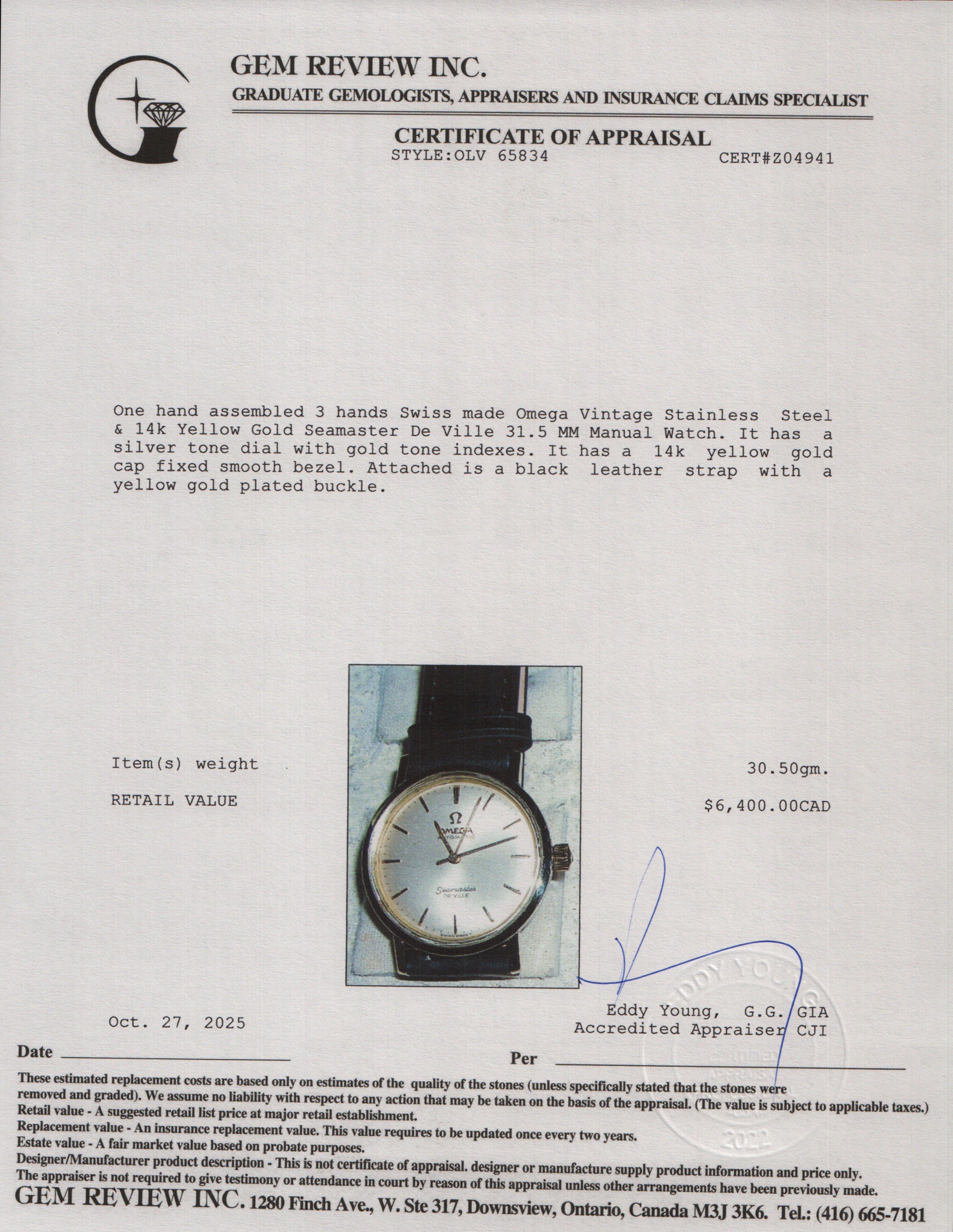 Vintage Stainless Steel & 14k Yellow Gold Seamaster De Ville 31.5 MM Manual Watch