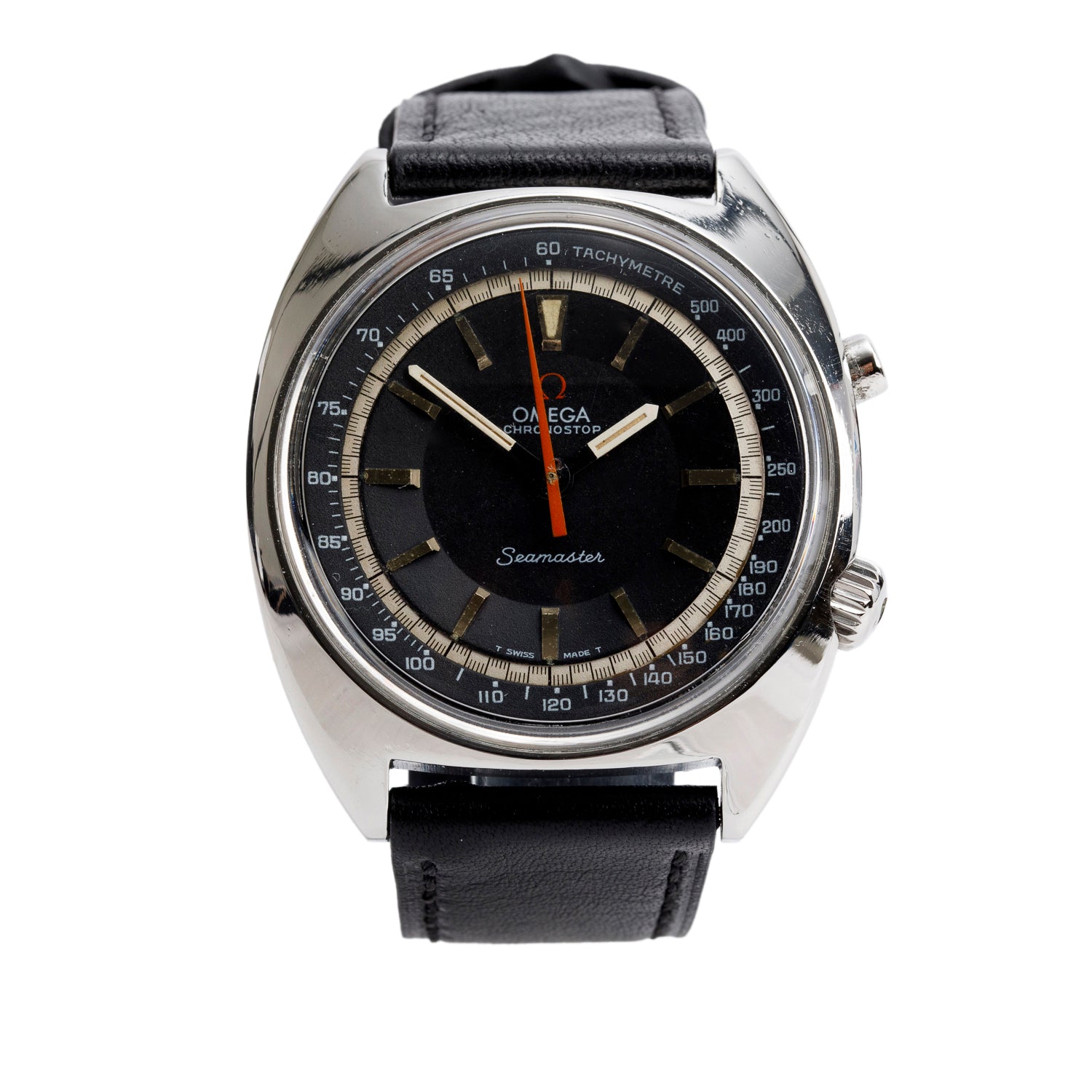 Vintage Stainless Steel Seamaster Chronostop 41 MM Manual Chronograph Watch Black Dial
