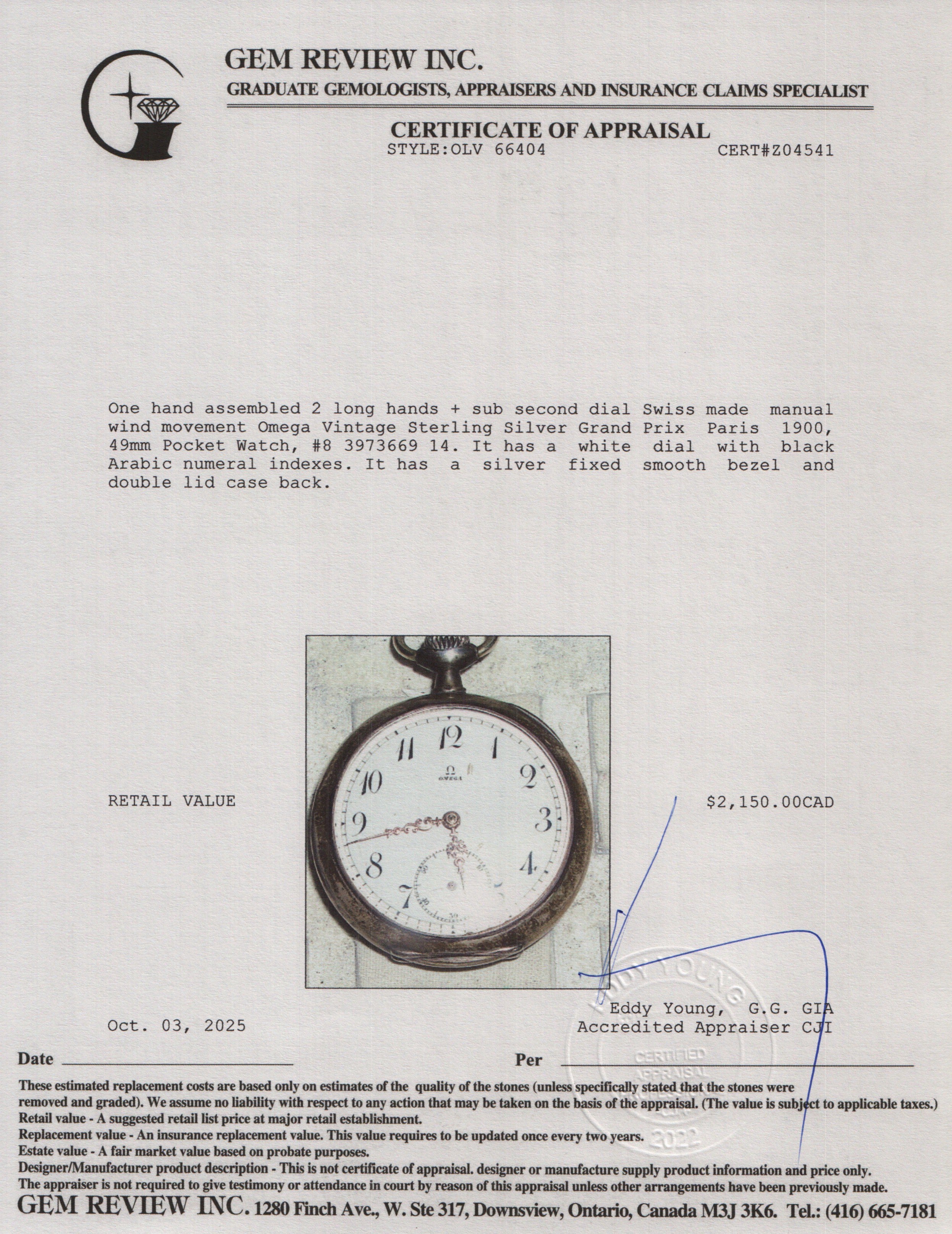 Vintage Sterling Silver Grand Prix Paris 1900 Pocket Watch