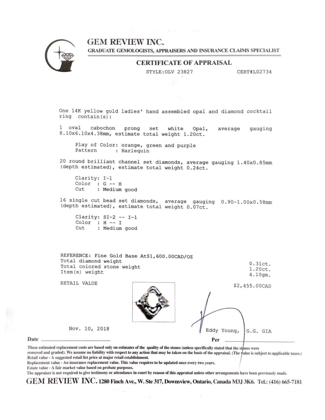 - 1 Oval Cabochon White Opal Weighing Approximately 1.20 ct.