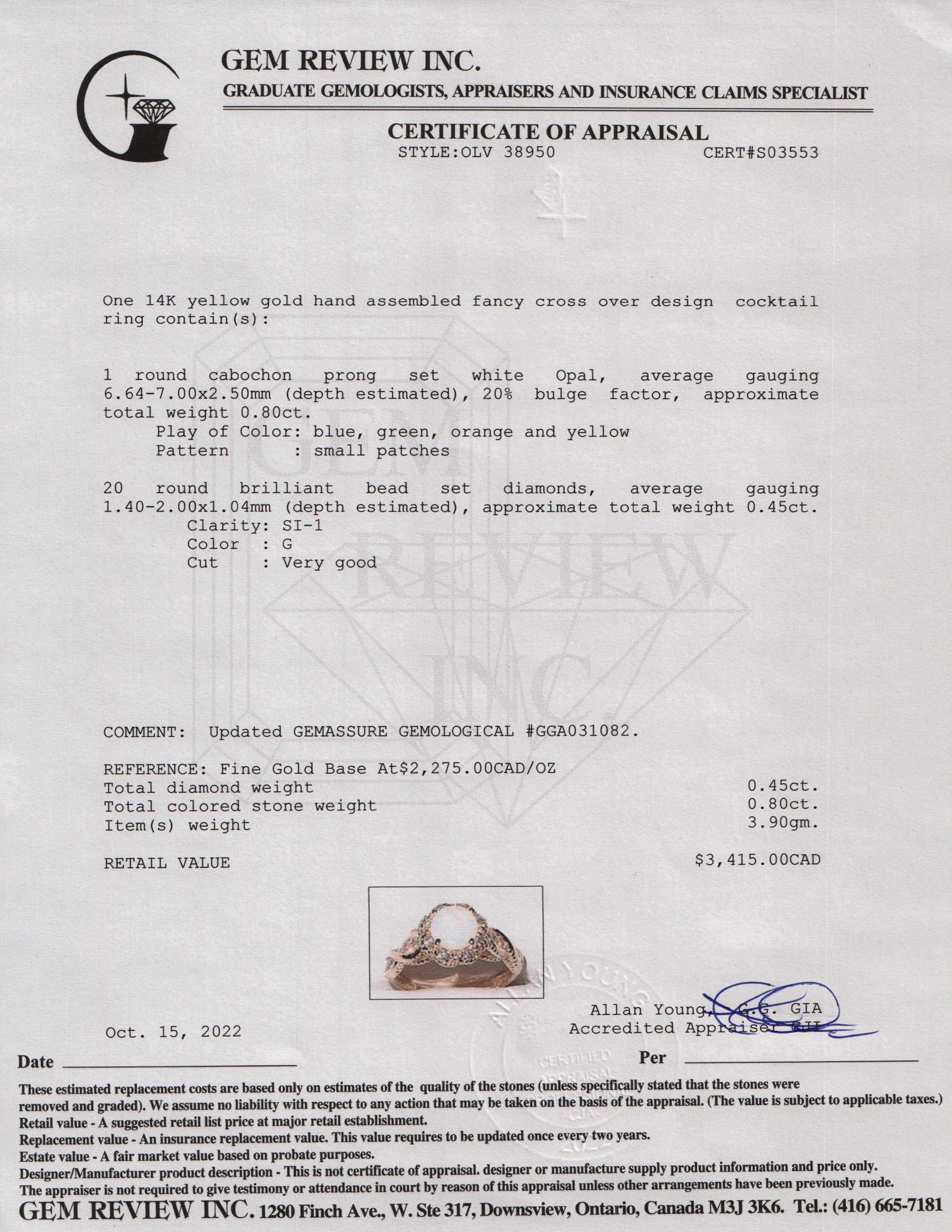 - 1 Round Cabochon White Opal Weighing Approximately 0.80 ct.