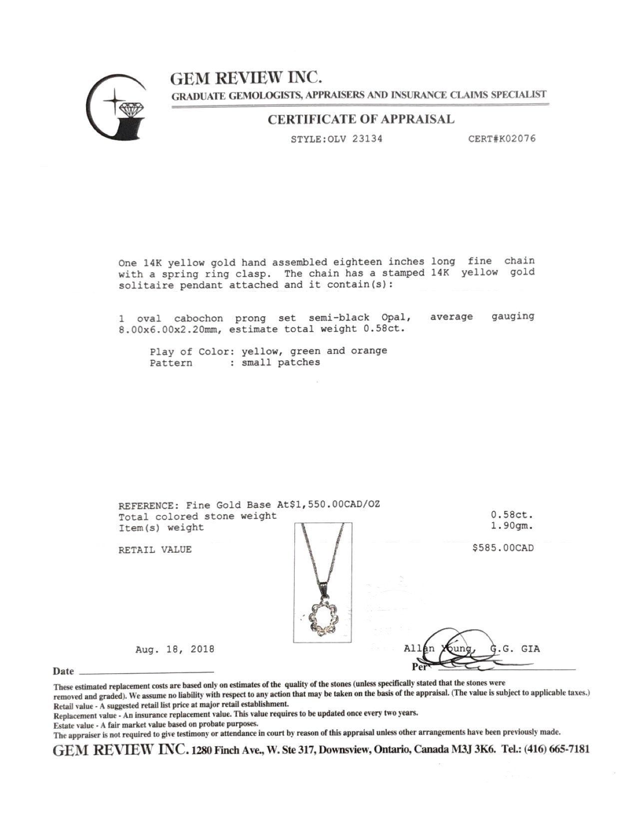- 1 Oval Cabochon Opal Weighing Approximately 0.58 ct.