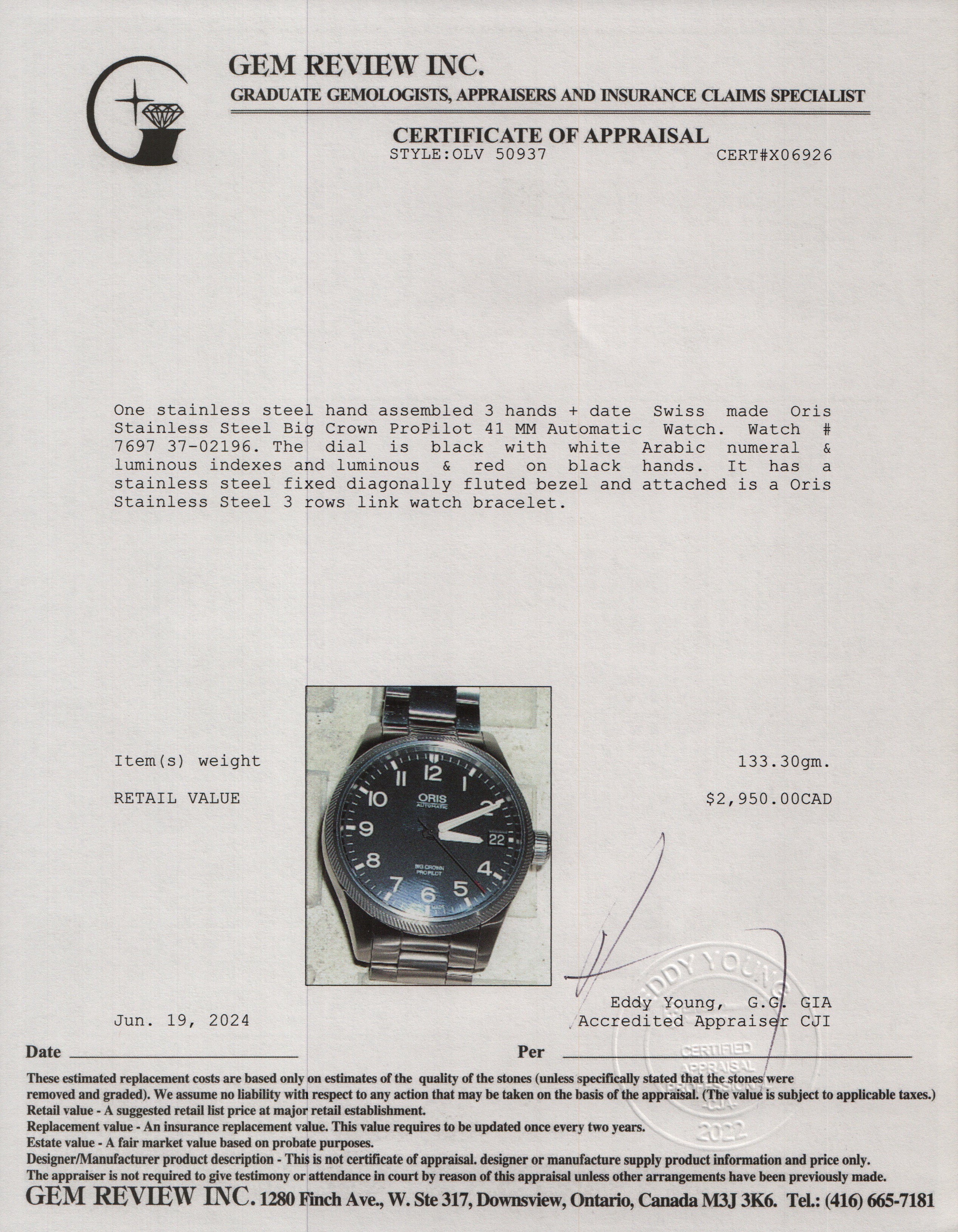 Stainless Steel Big Crown ProPilot 41 MM Automatic Watch w/ Box & papers