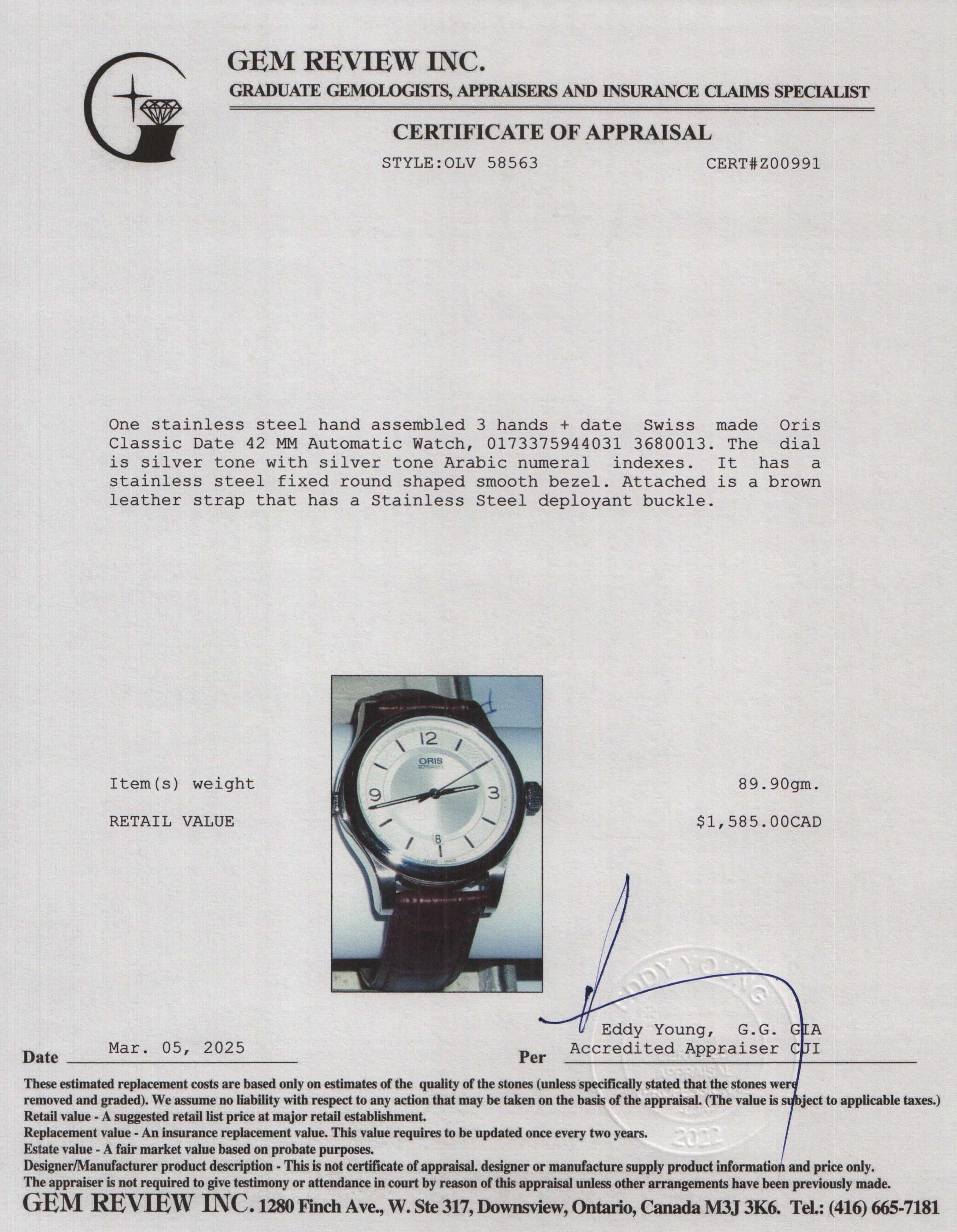 Stainless Steel Classic Date 42 MM Automatic Watch w/ Box & Papers