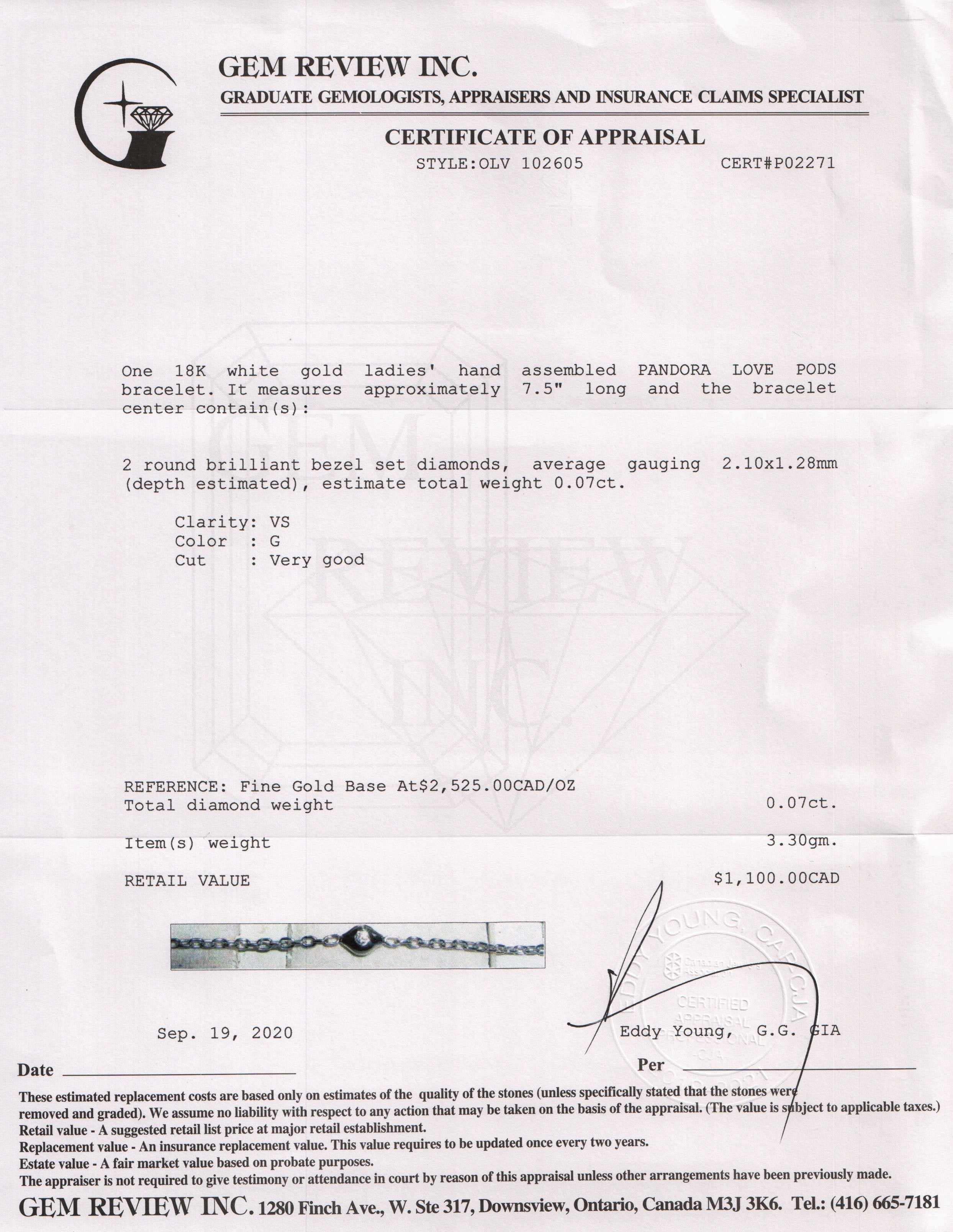 Pandora 18k White Gold Love Pods Diamond Bracelet