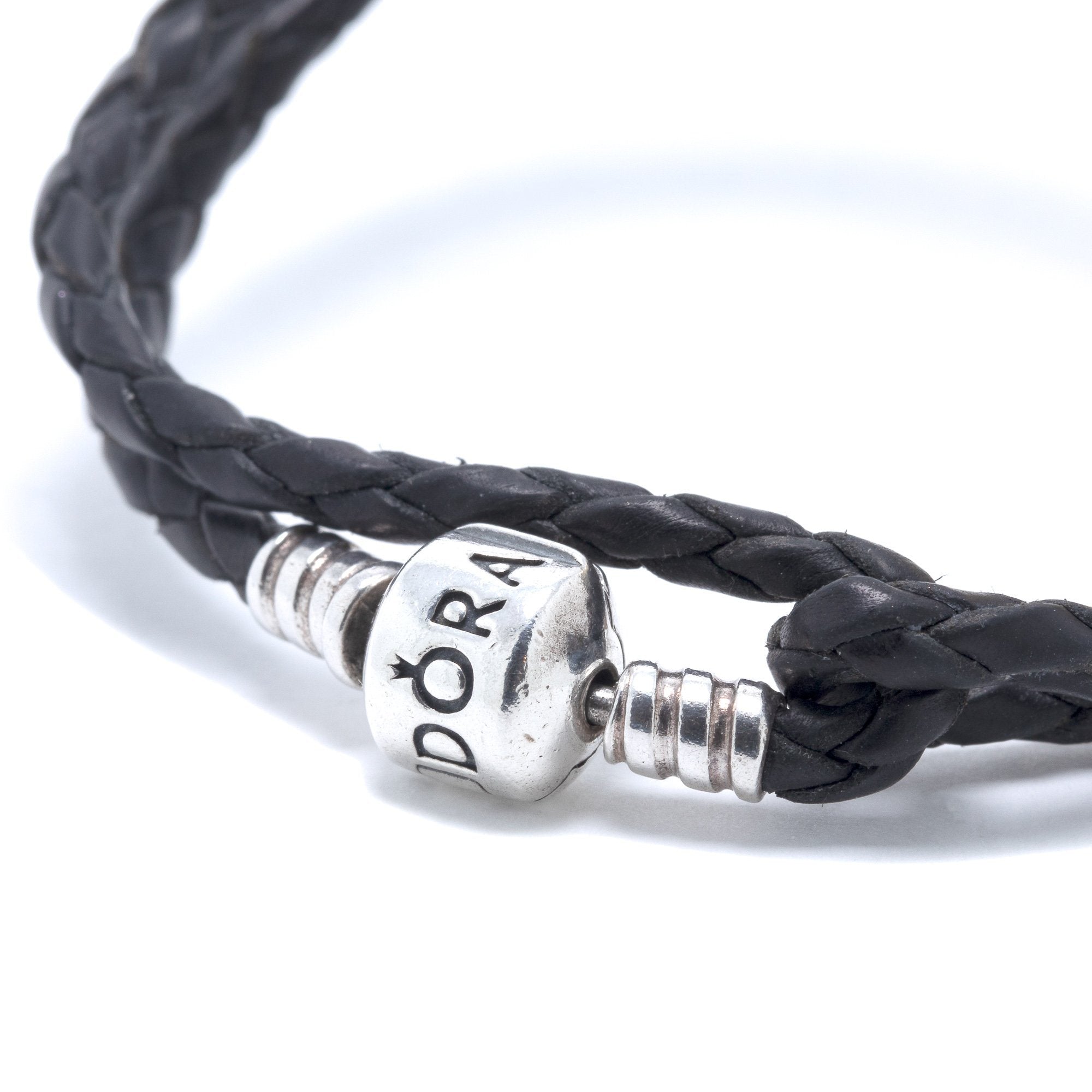 - Double Black Braided Leather Bracelet with Sterling Silver Barrel Clasp