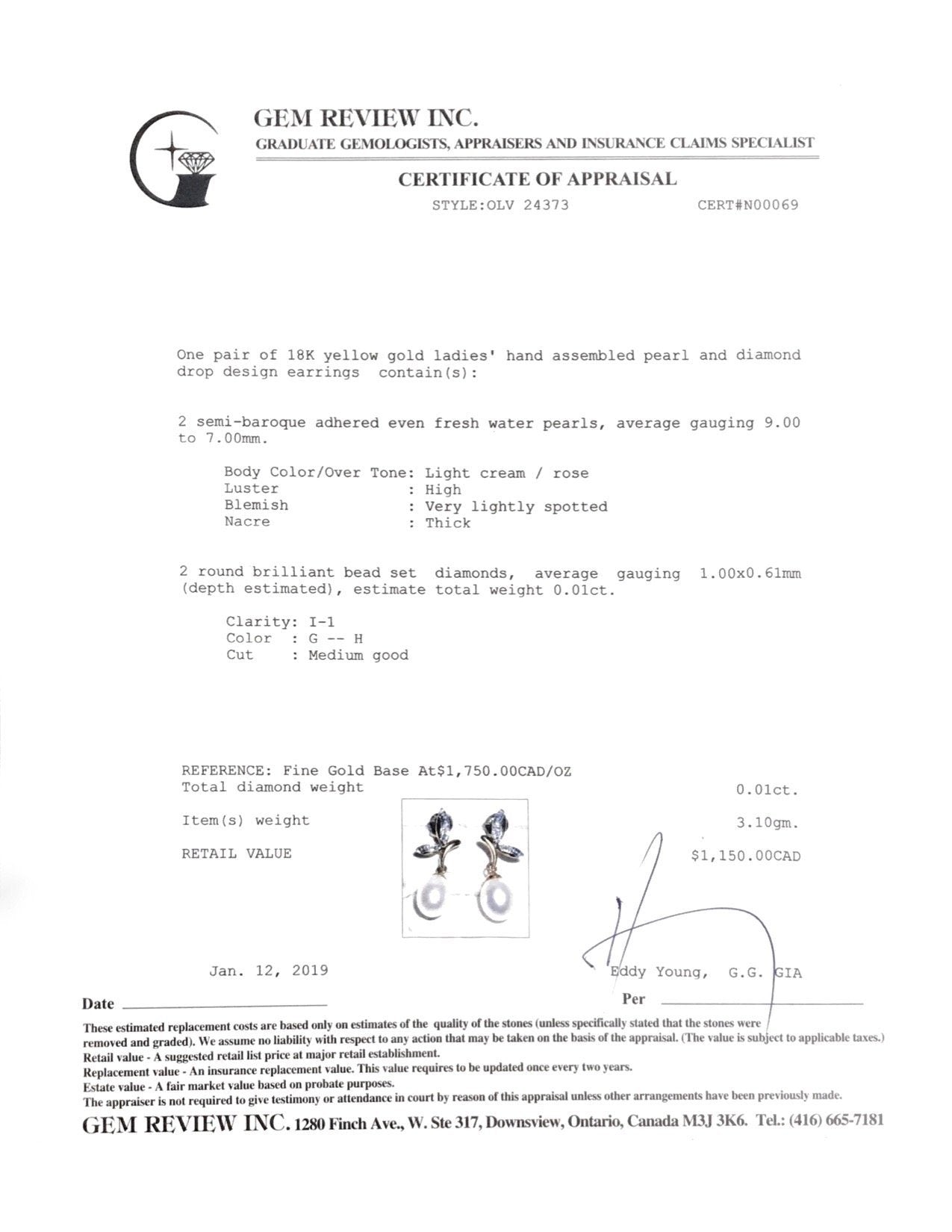 - 2 Semi-Baroque Adhered Even Fresh Water Pearls, 7.00-9.00 mm