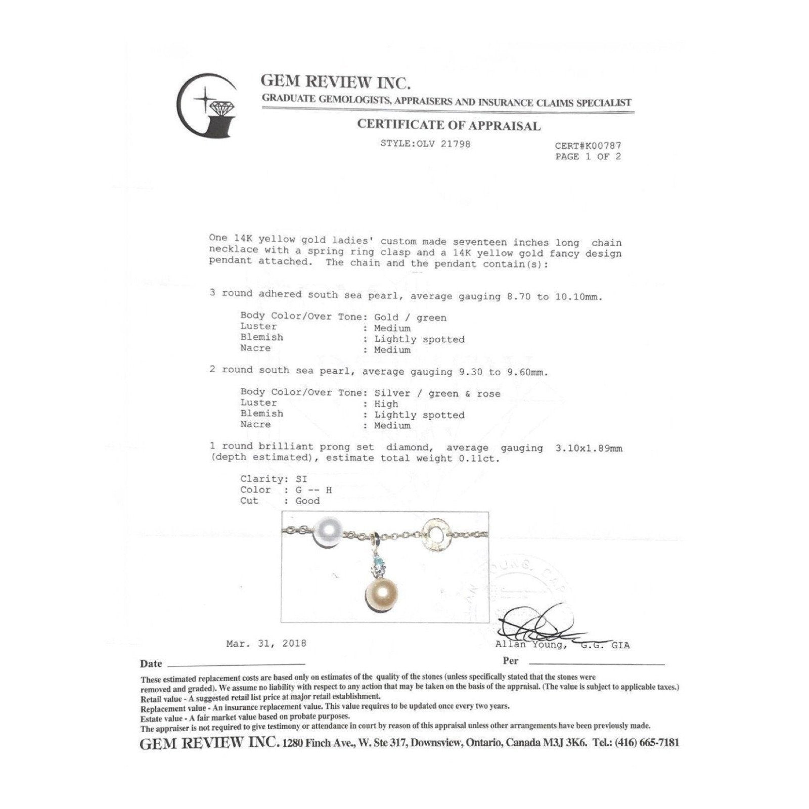 Pearl, Emerald and Diamond Necklace in 14k yellow Gold