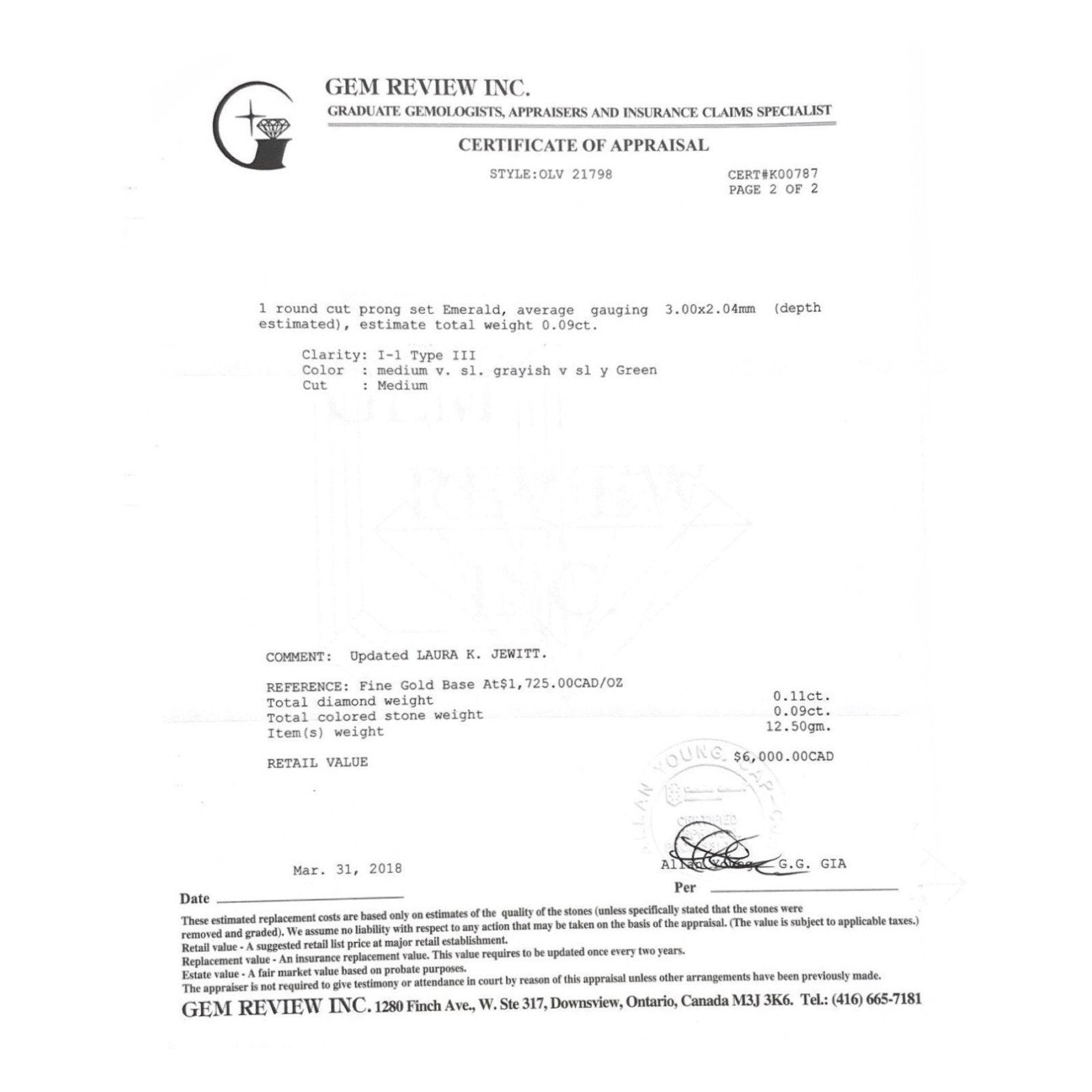 - 1 Round Cut Prong Set Emerald (0.09 Total Carat Weight)