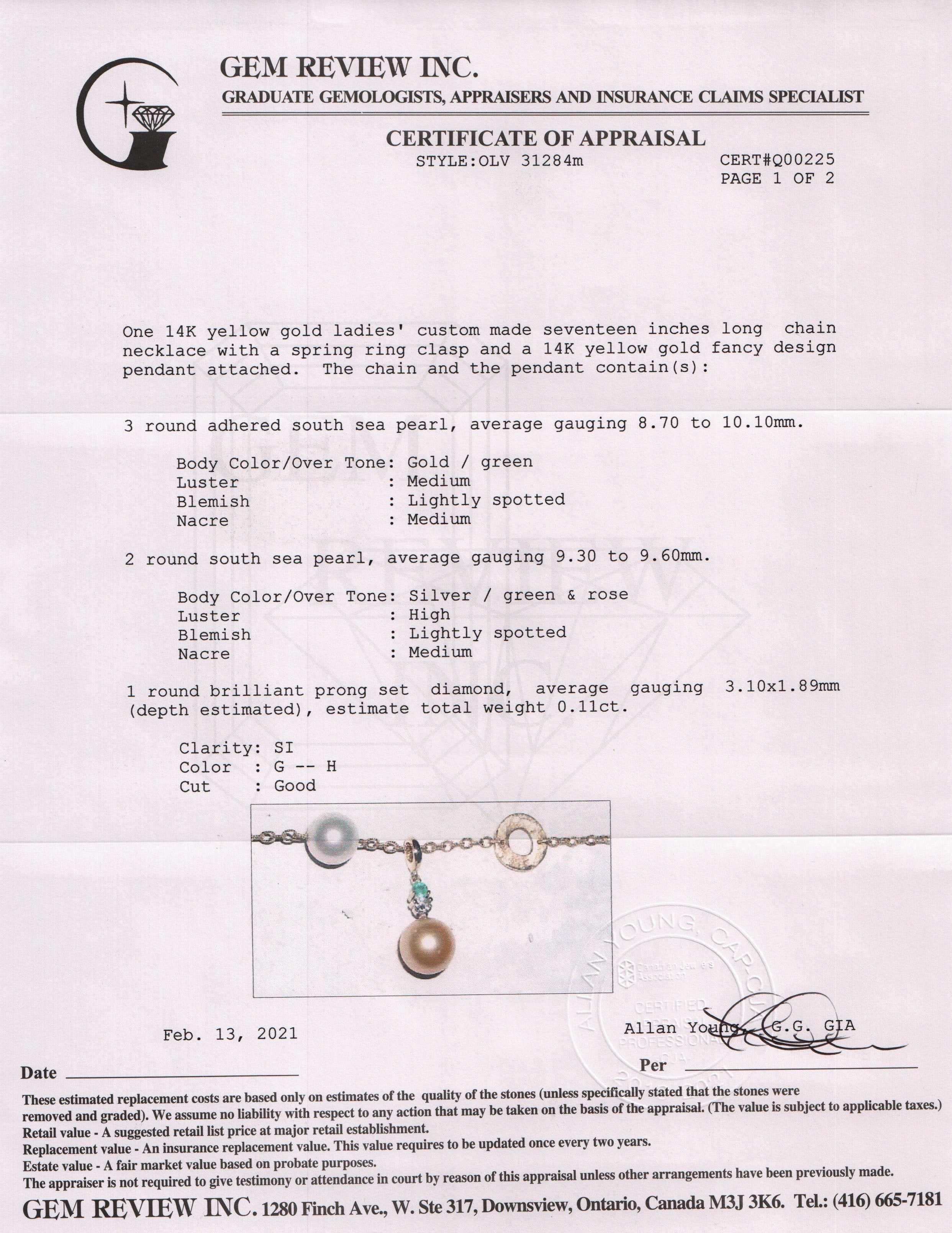 - 3 Round South Sea Pearls, Approximately 8.7-10.1 mm